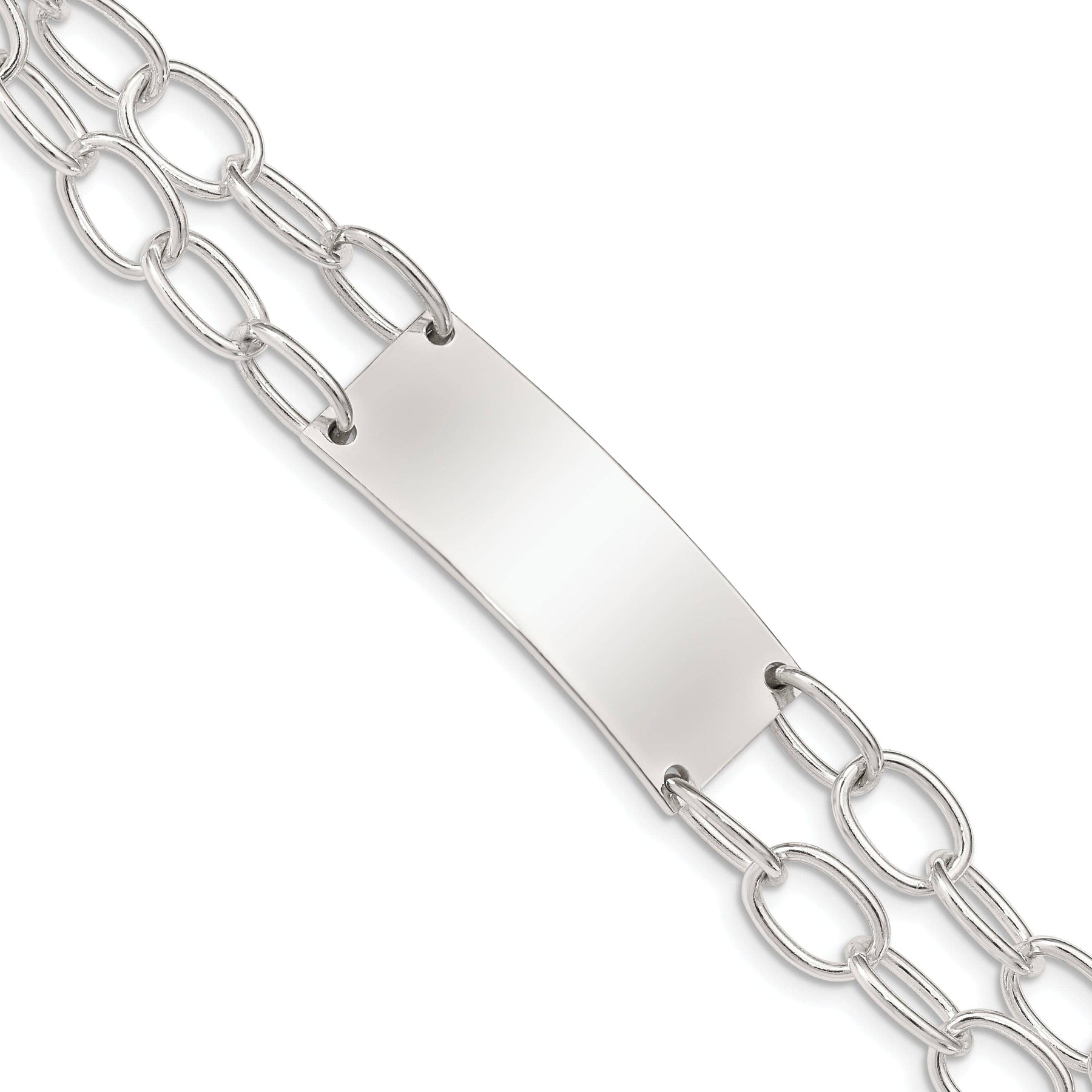 The Silver Double Strand Oval Link I.D Bracelet is a stunning piece of jewelry made from high-quality sterling silver with a polished finish. This engravable bracelet features two strands of intricate 4-mm fancy oval links that come together to create a unique and stylish design.