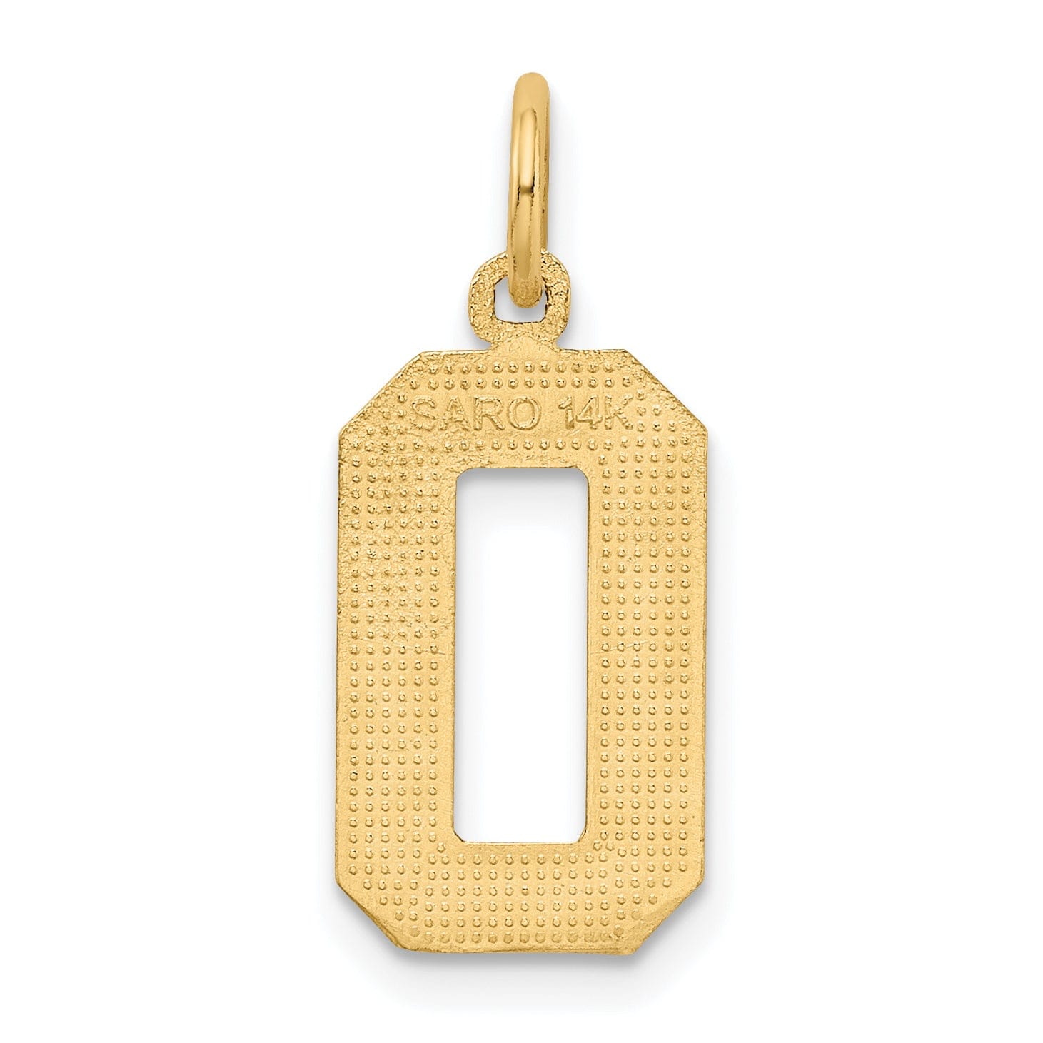 14K Yellow Gold Polished Diamond Cut Finish Medium Size Number 0 Charm Pendant