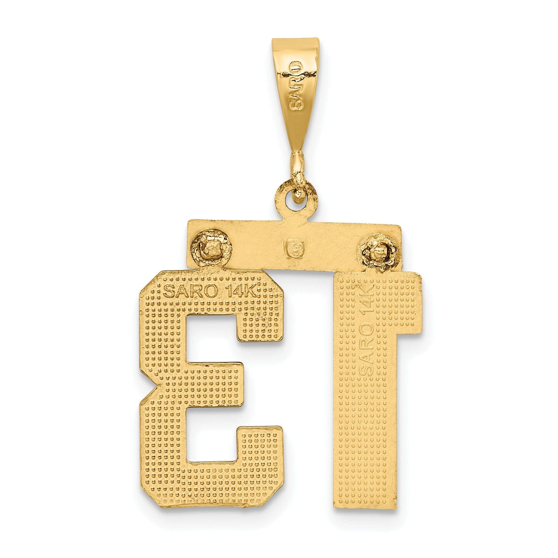 14K Yellow Gold Polished Diamond Cut Finish Medium Size Number 13 Charm Pendant