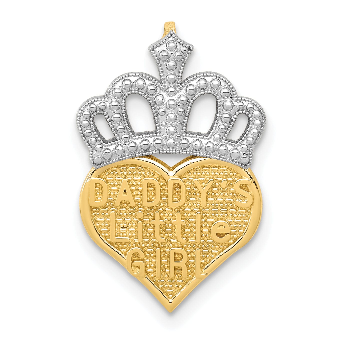 Lovely Rita's Pendants & Charms 14k Yellow Gold, White Rhodium Polished Beaded Textured Finish Daddy's Little Girl Heart Shape with Crown Design Chain Slide Pendant