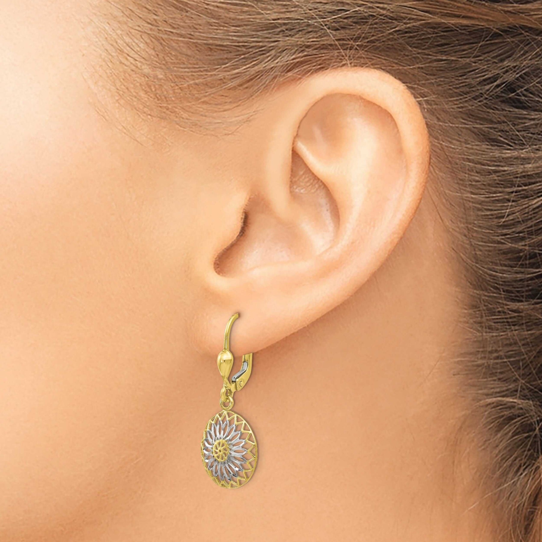 Enhance your everyday look with these exquisite 10k Two Tone Gold Leverback Earrings. Crafted with precision and care, these earrings are made of high-quality 10k two tone gold with a polished finish that exudes elegance and sophistication.