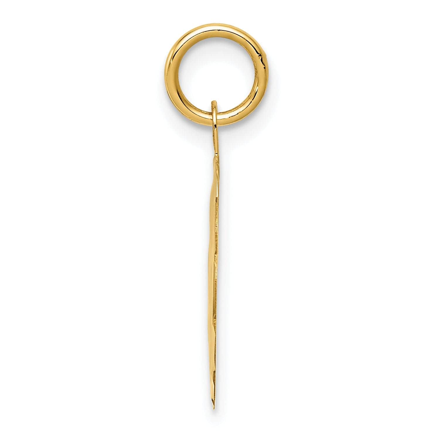 Crafted from high-quality 14K yellow gold, this charm pendant features a flat back design with a beautiful brush polished finish. The round ridge trim design adds a touch of elegance to the piece, making it a truly unique and eye-catching accessory.