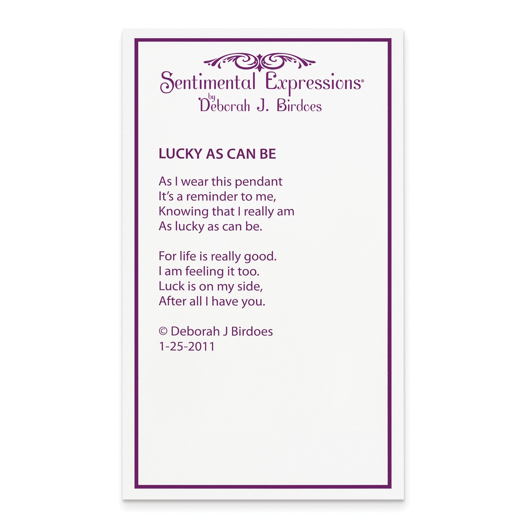 The necklace features a unique design that is sure to catch the eye of anyone who sees it. The pendant is engraved with the words "Lucky As Can Be", adding a touch of positivity and good fortune to your look. The chain has a length of 18 inches, making it the perfect length to complement any neckline.