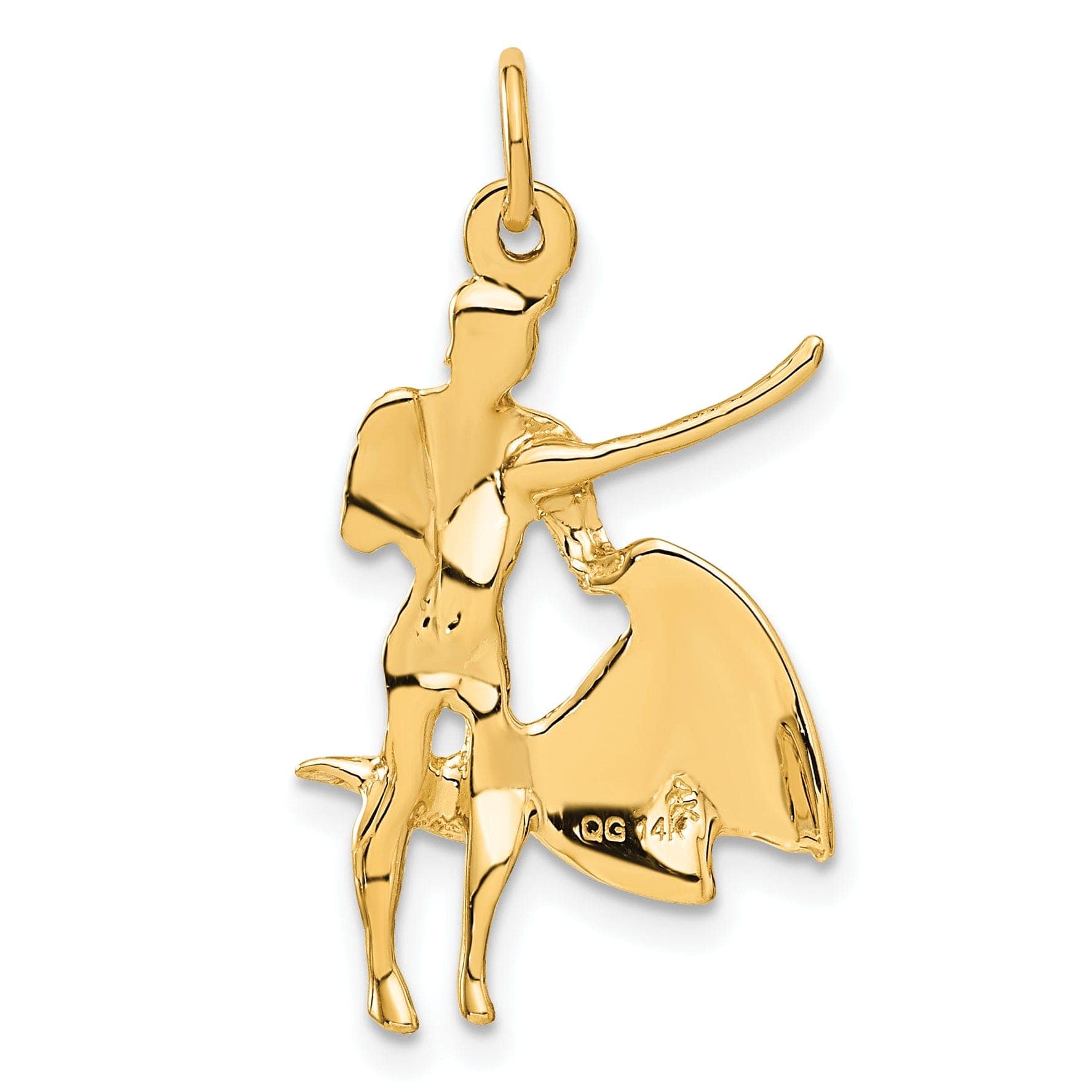 14k Yellow Gold Polished Finish Bull Fighter Matador Charm Pendant