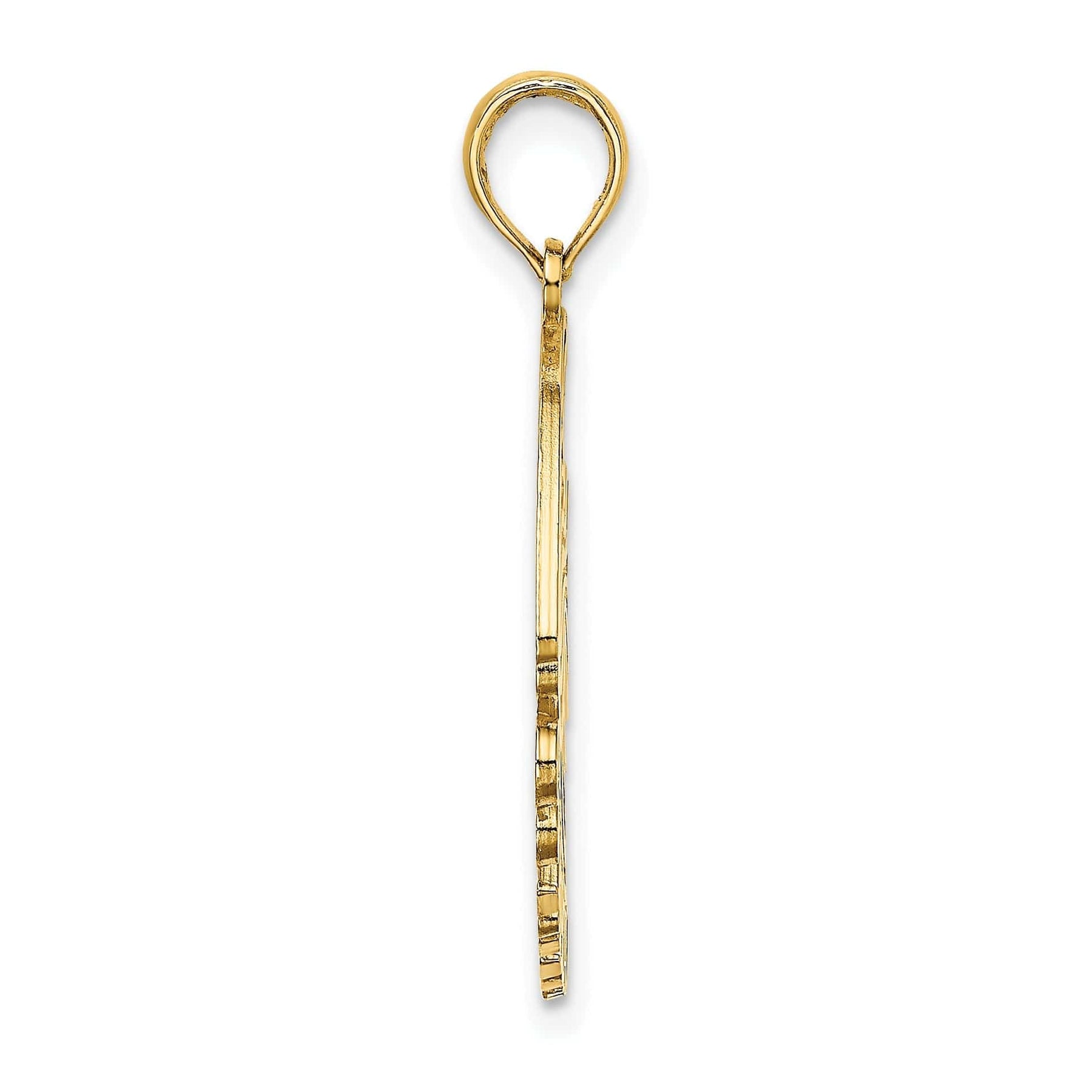 This 14K Yellow Gold Polished Finish Flat Back CURACAO with Cut Out Angelfish Design Charm Pendant is a versatile piece that can be worn for any occasion, from casual outings to special events. Treat yourself or surprise a loved one with this beautiful and unique charm pendant today.