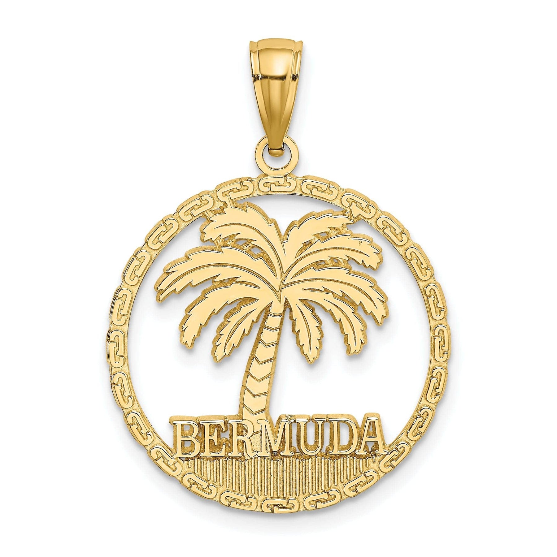 14K Yellow Gold BERMUDA in Circle Design Palm Tree Pendant