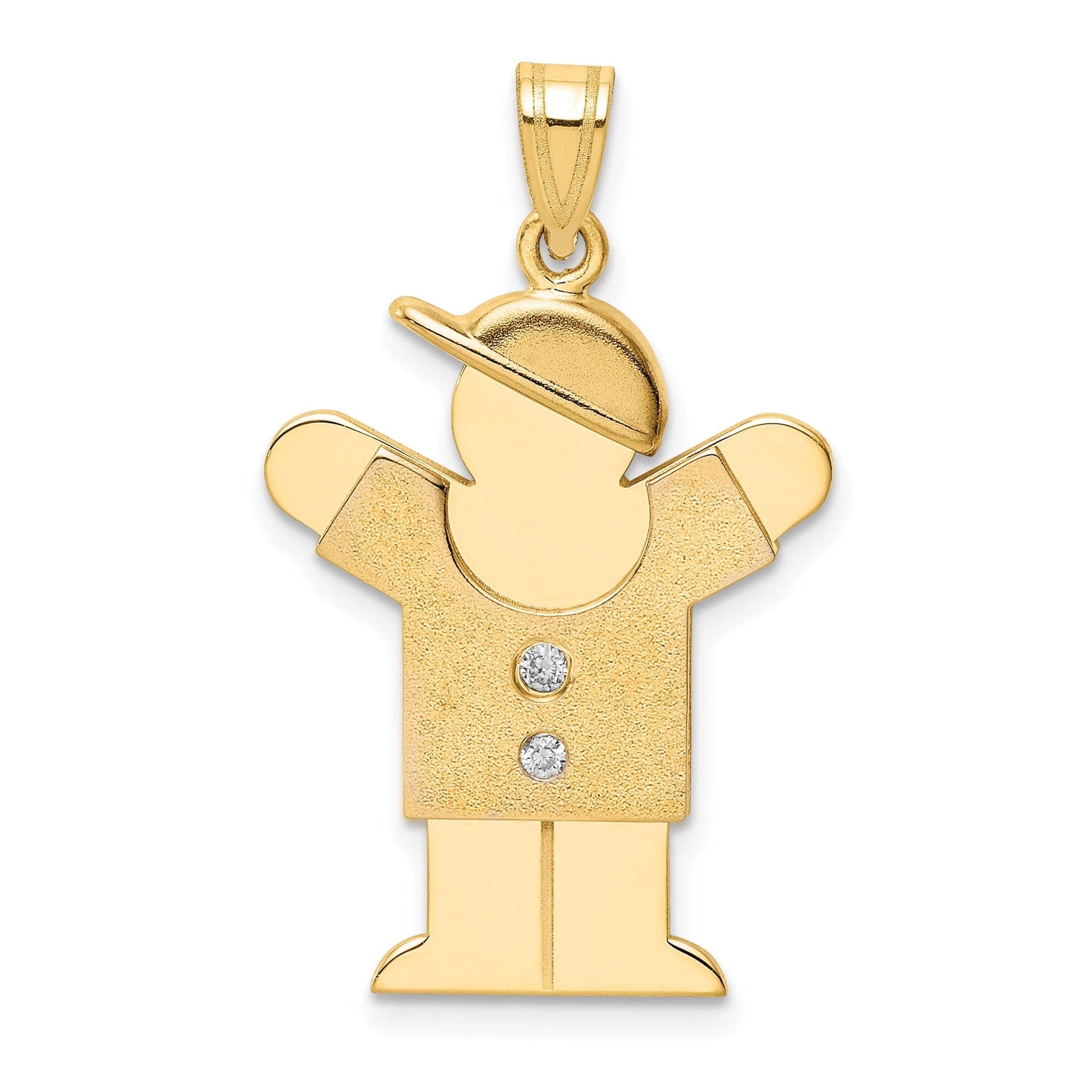 Add a touch of whimsy and charm to your jewelry collection with this adorable 14k Yellow Gold Diamond Boy With Hat Love Pendant. Crafted from high-quality casted satin solid polished yellow gold, this pendant features a sweet depiction of a boy wearing a hat, complete with a sparkling diamond accent for added elegance.