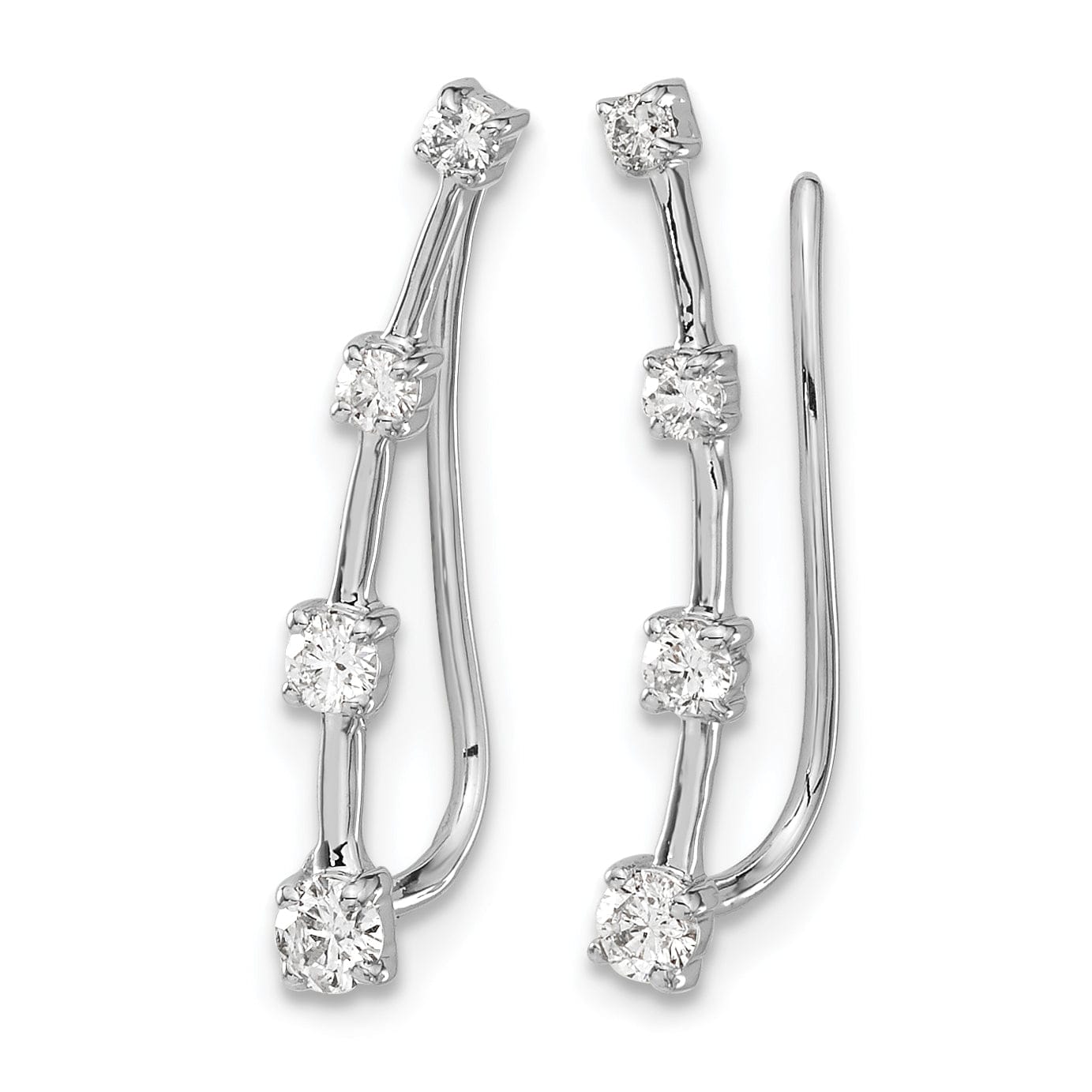 14k White Gold 1/3 CT Diamond Graduated 4-stone Ear Climber Earrings