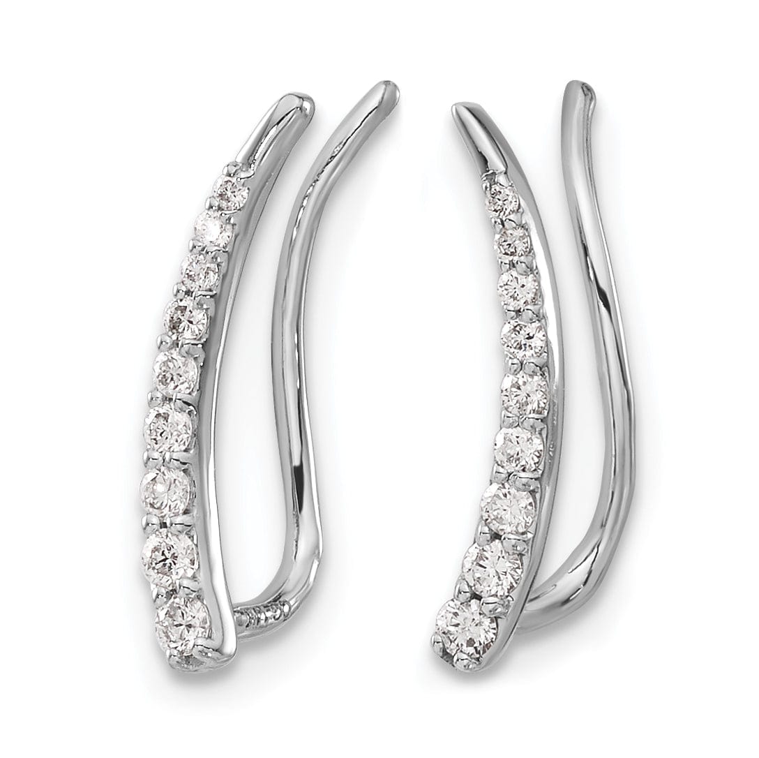 14k White Gold 1/6 CT Diamond Fancy Graduated Ear Climber Earrings