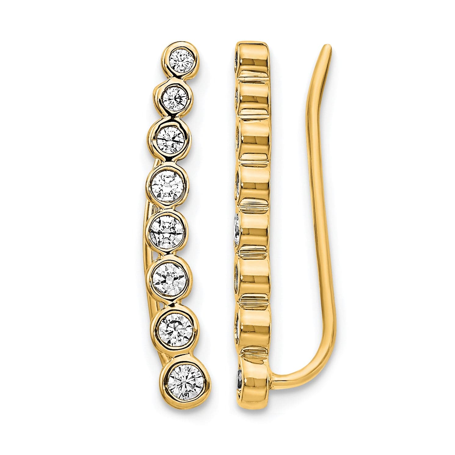 14k Yellow Gold 3/8 CT Diamond Bezel Graduated Ear Climber Earrings