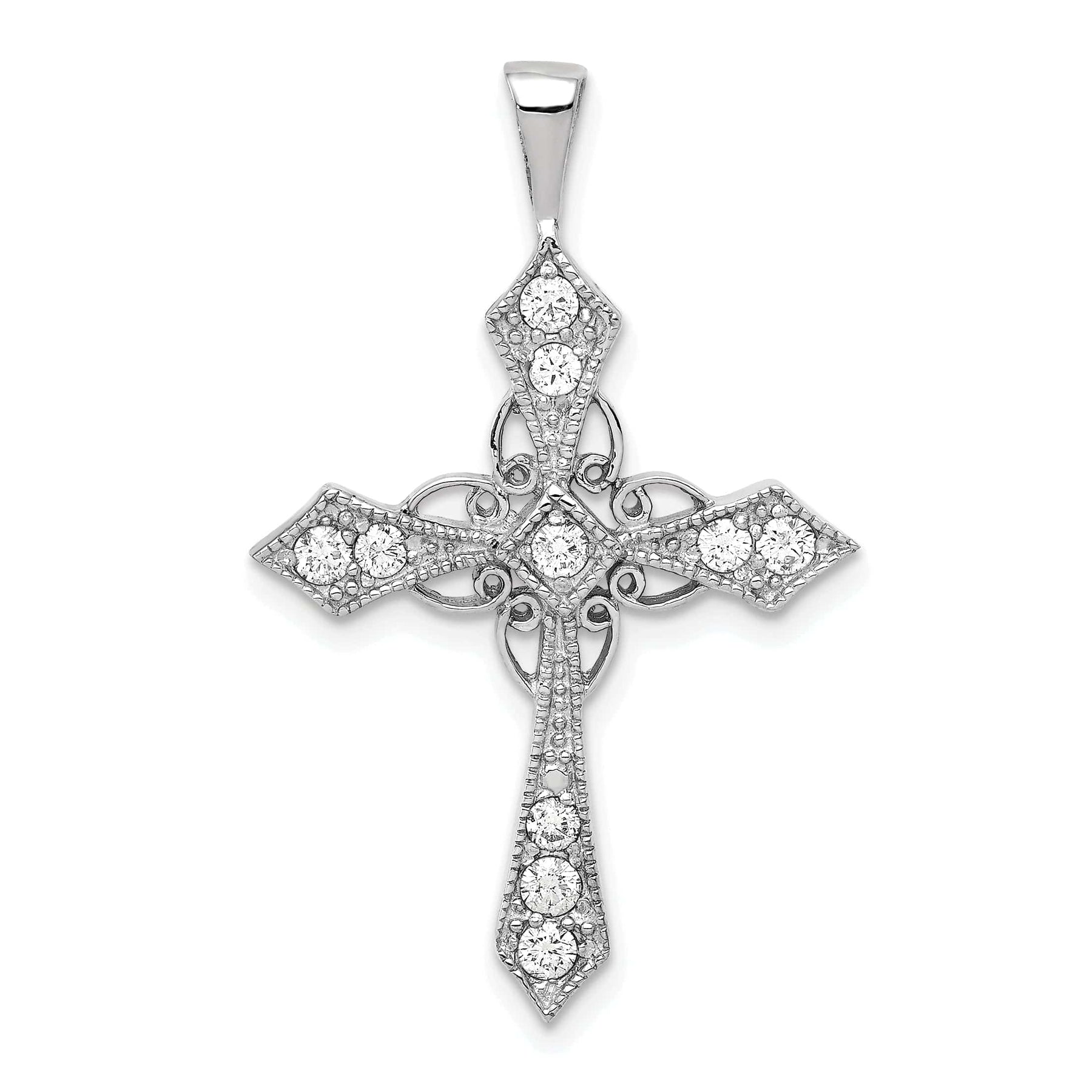 14k White Gold 1/3 CT I1 Diamond Passion Cross Design Pendant