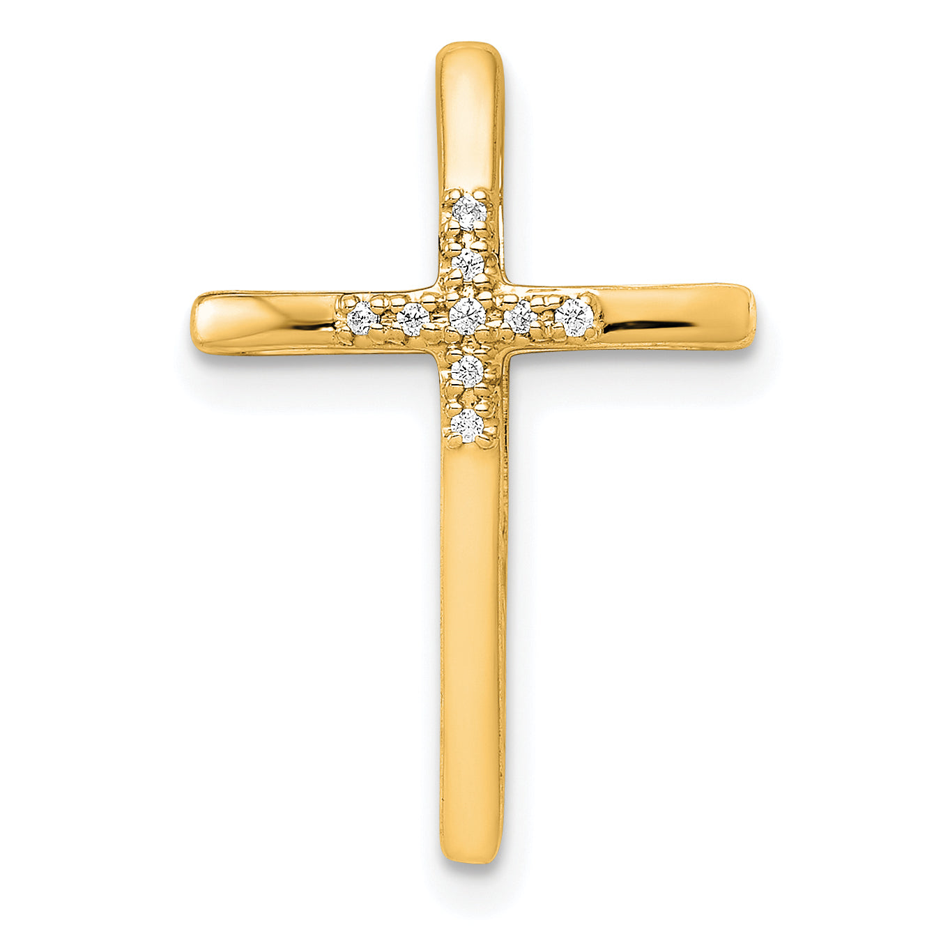 14k Yellow Gold .03 CT Diamond Cross Chain Slide Pendant