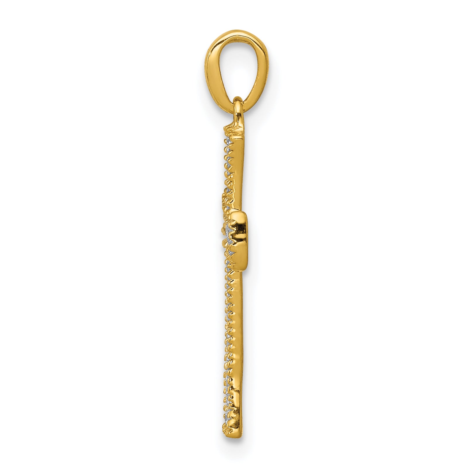 14k Yellow Gold 1/10 CT Diamond Artistic Design Cross Pendant