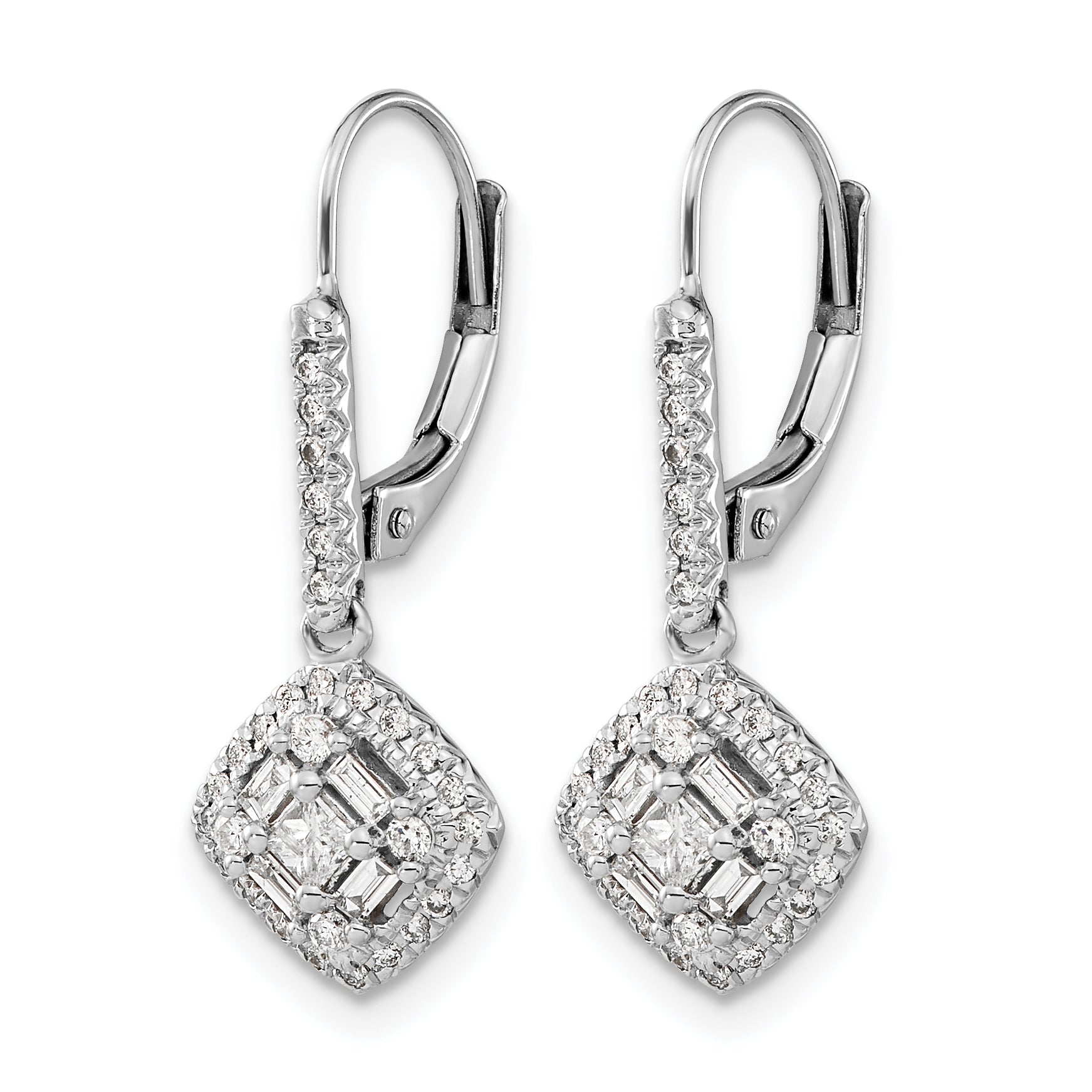 14k White Gold 1/2 CT Diamond Square Cluster Leverback Earrings