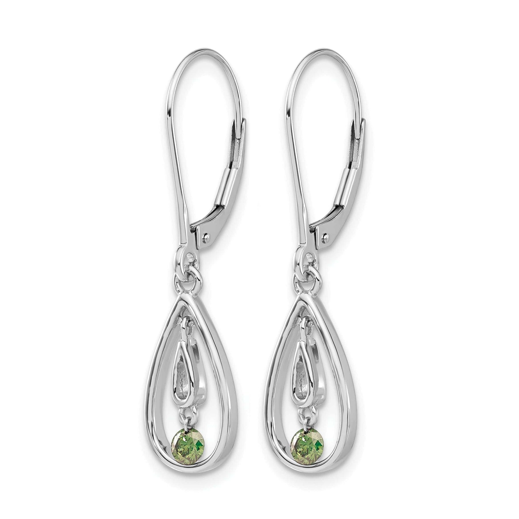 14k White Gold 1/8 CT Green Diamond Teardrop Leverback Earrings