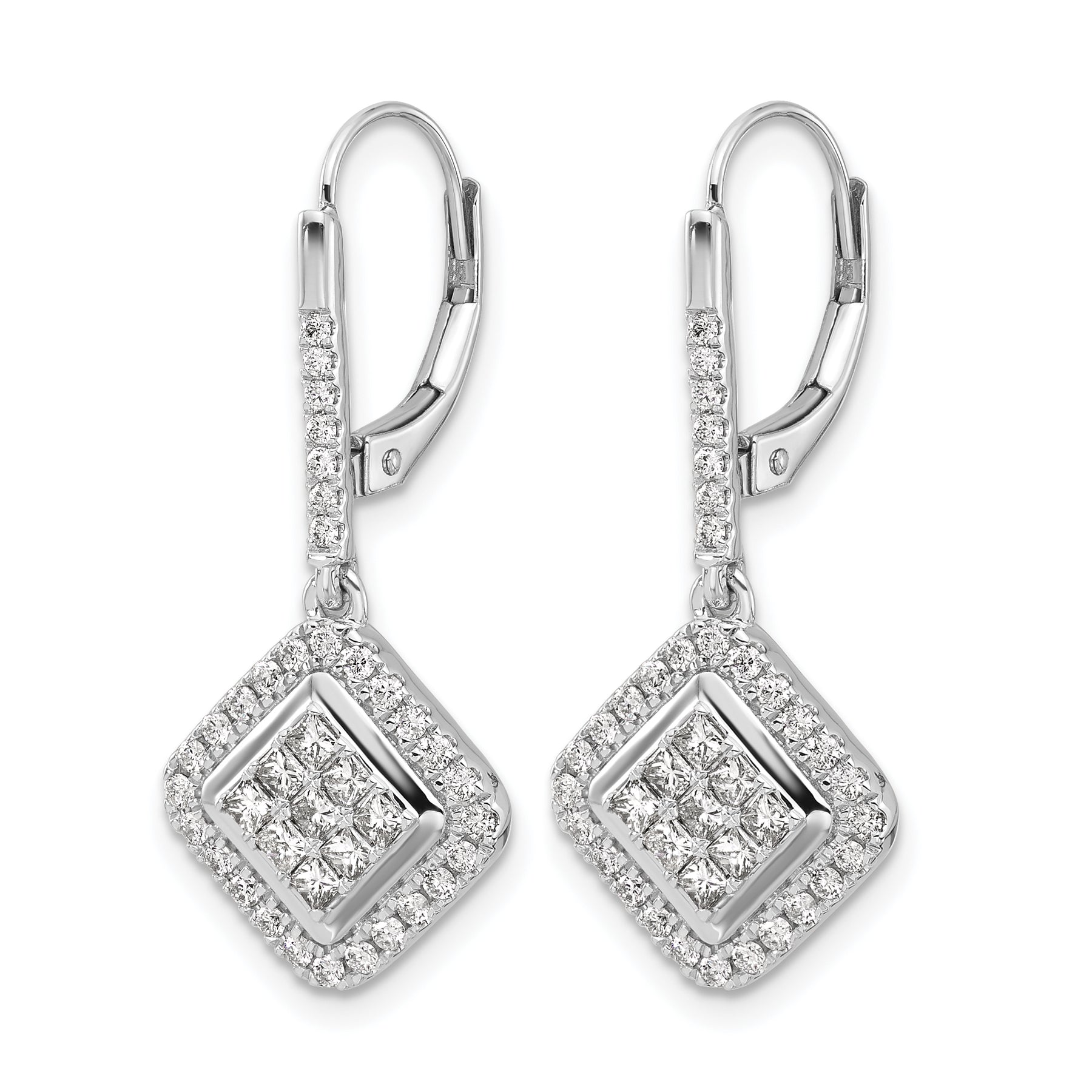 14k White Gold 1 CT Diamond Square Cluster Leverback Earrings