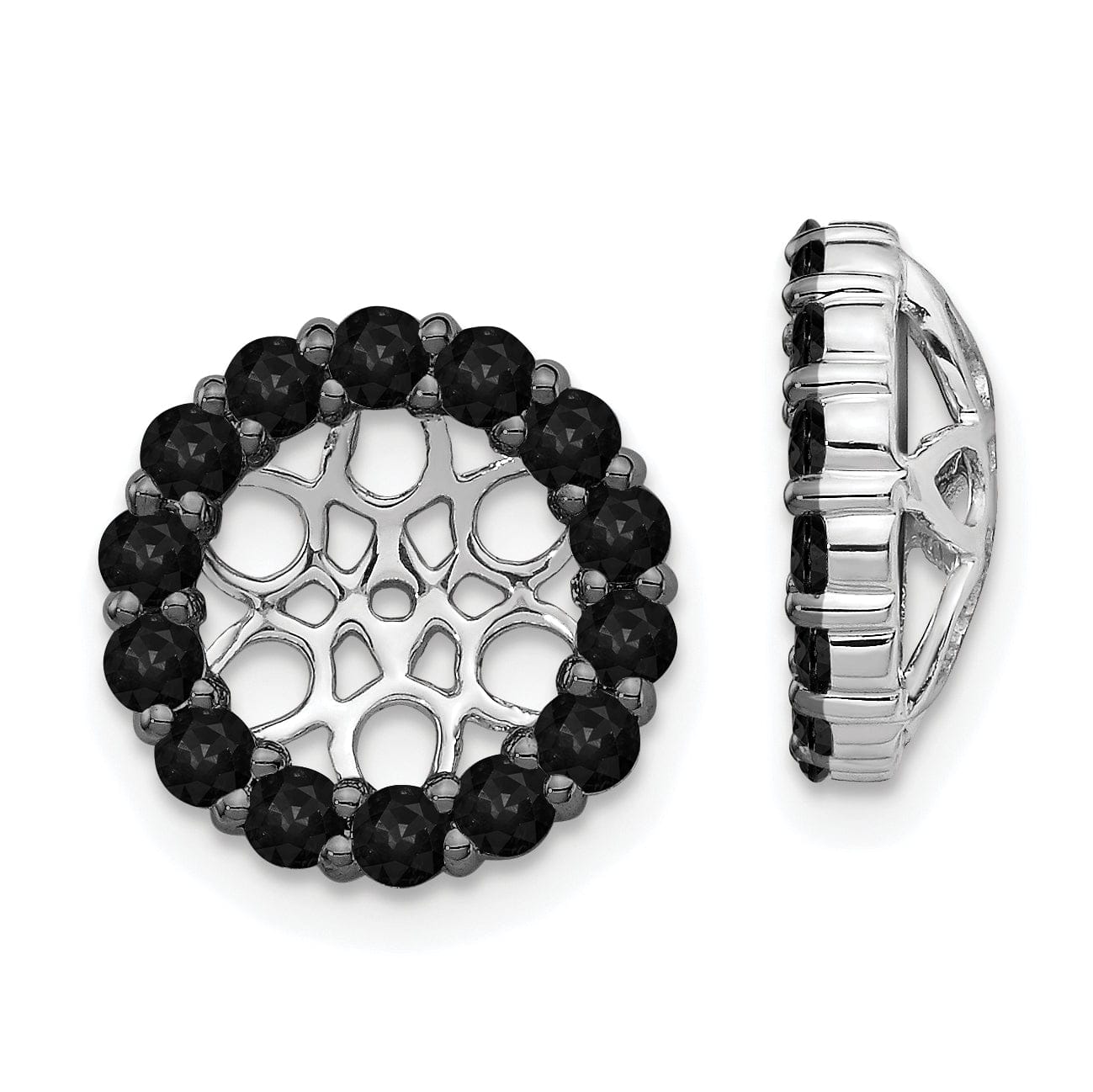 14k White Gold 1 CT Black Diamond Circle Cluster Earring Jackets