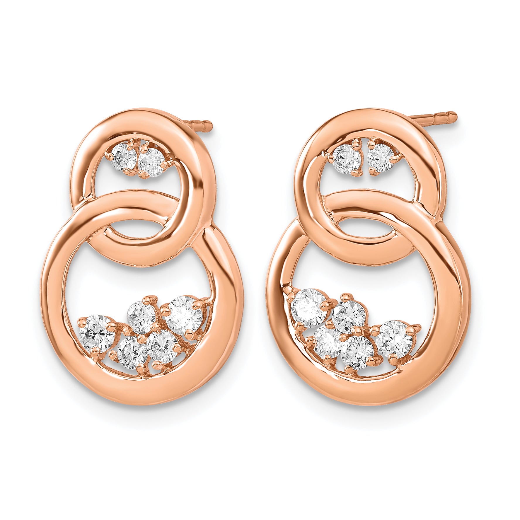 14k Rose Gold Polished 1/2 CT Diamond Double Circle Post Earrings