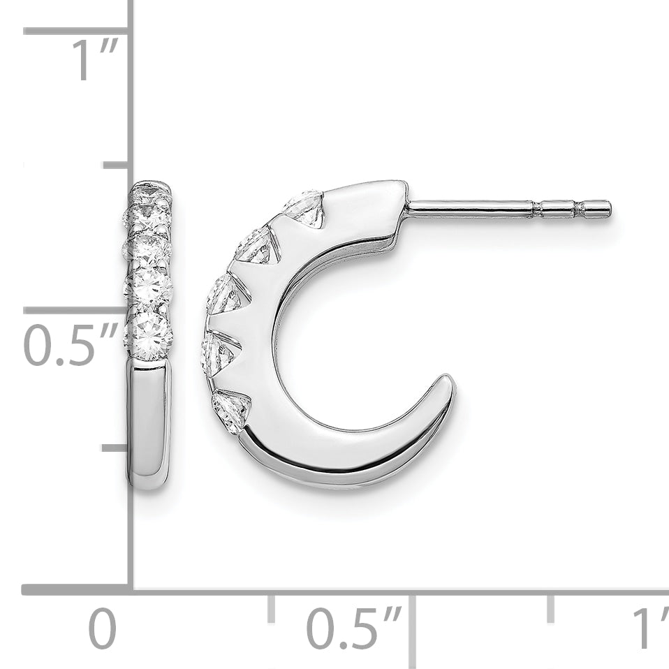14k White Gold 1/2 CT Diamonds J-Hoop Post Earrings
