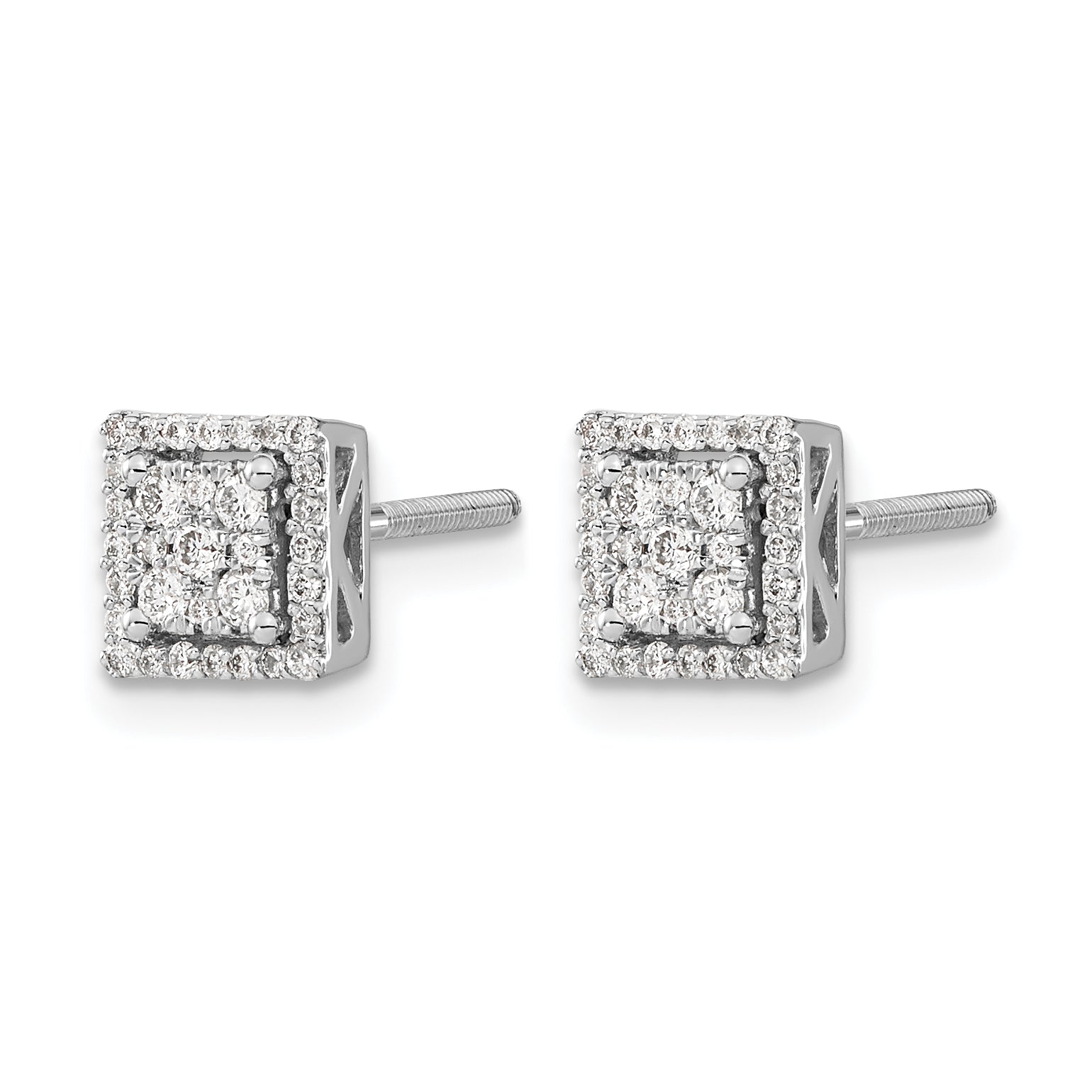 14k White Gold 1/3 CT Diamond Cluster Square Screwback Post Earrings