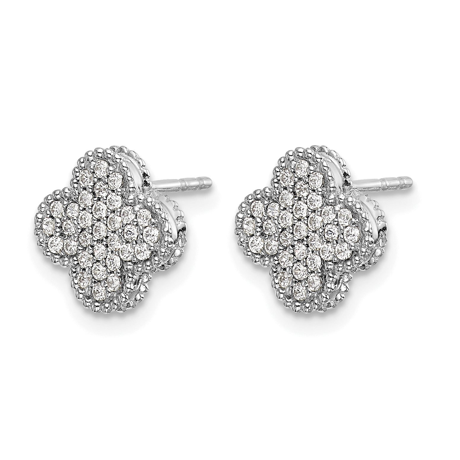 14k White Gold 1/3 CT Pave Diamond Quatrefoil Design Post Earrings
