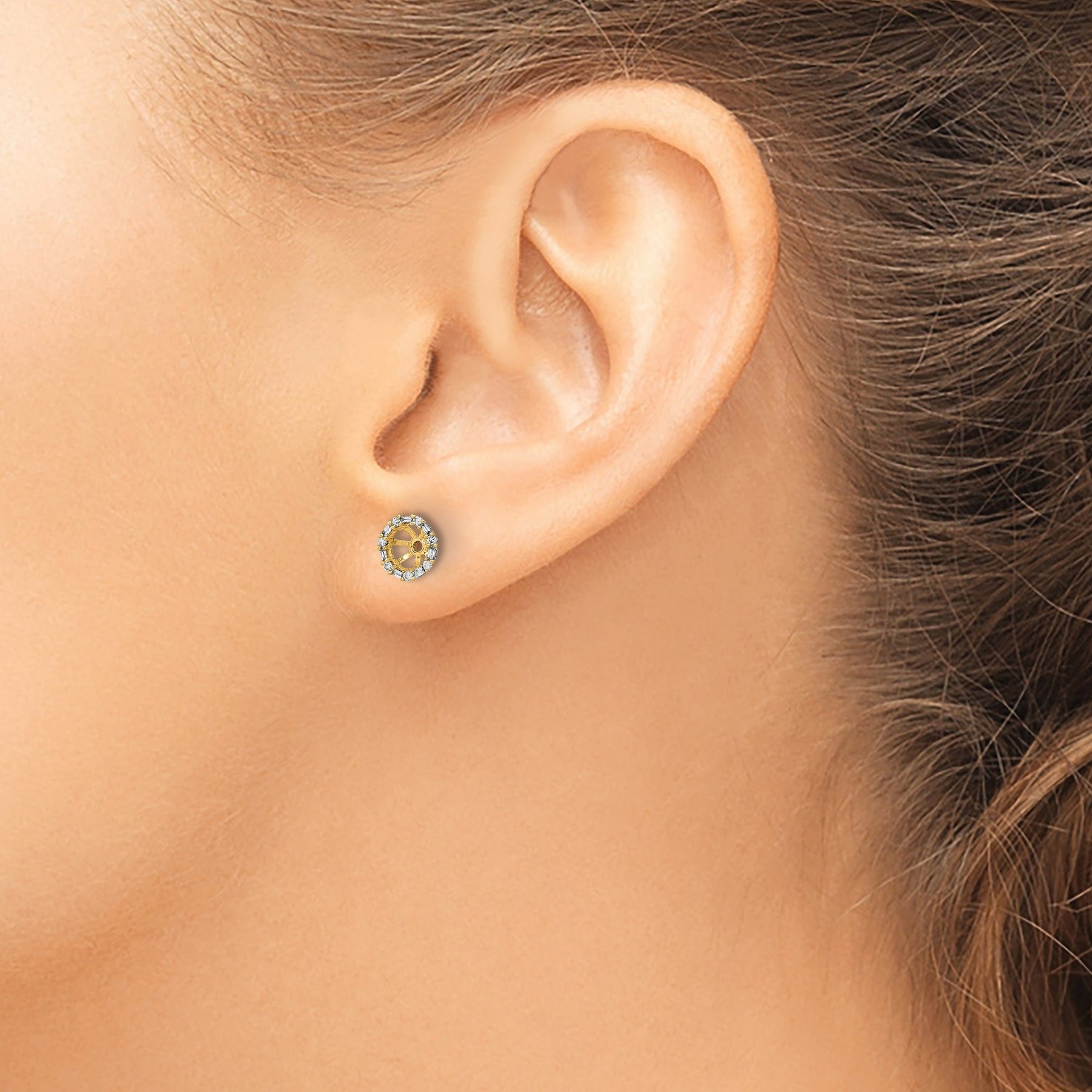 14k Yellow Gold 1/10 CT Cluster Diamond Circle Earring Jackets