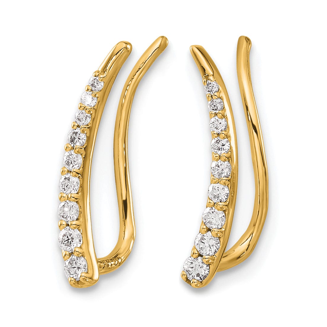 14k Yellow Gold 1/6 CT Diamond Graduated Ear Climber Earrings