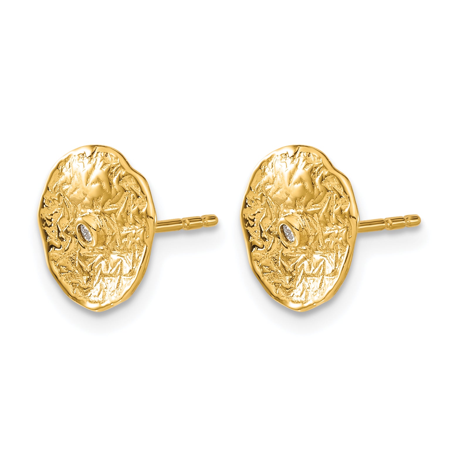 14k Yellow Gold Textured Circle 0.03 CT Diamond Post Earrings