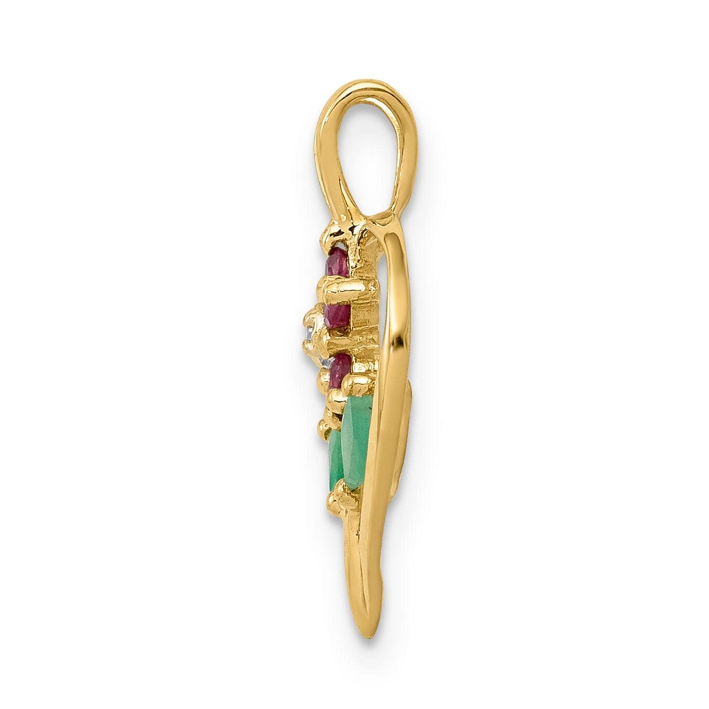 14k Yellow Gold Polished Finish Open Back 0.315-CT Ruby/Emerald/0.003-CT Diamond Beautiful Flower in Heart Design Charm Pendant