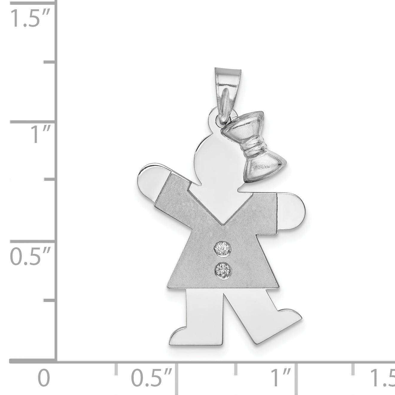 14k White Gold Diamond Girl With Bow Kiss Pendant