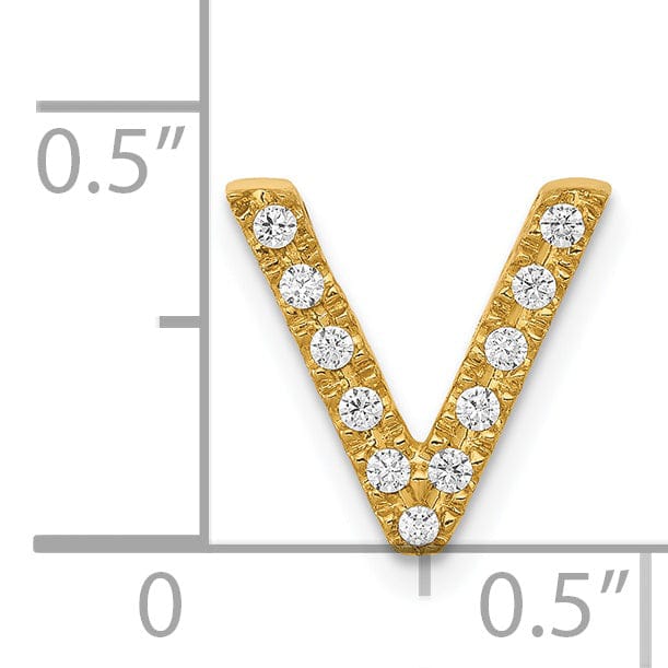 14K Yellow Gold Diamond 0.11-CT Letter V Initial Charm Pendant