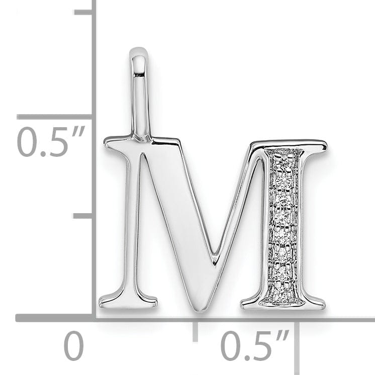 14K White Gold Diamond 0.028-CT Letter M Initial Charm Pendant