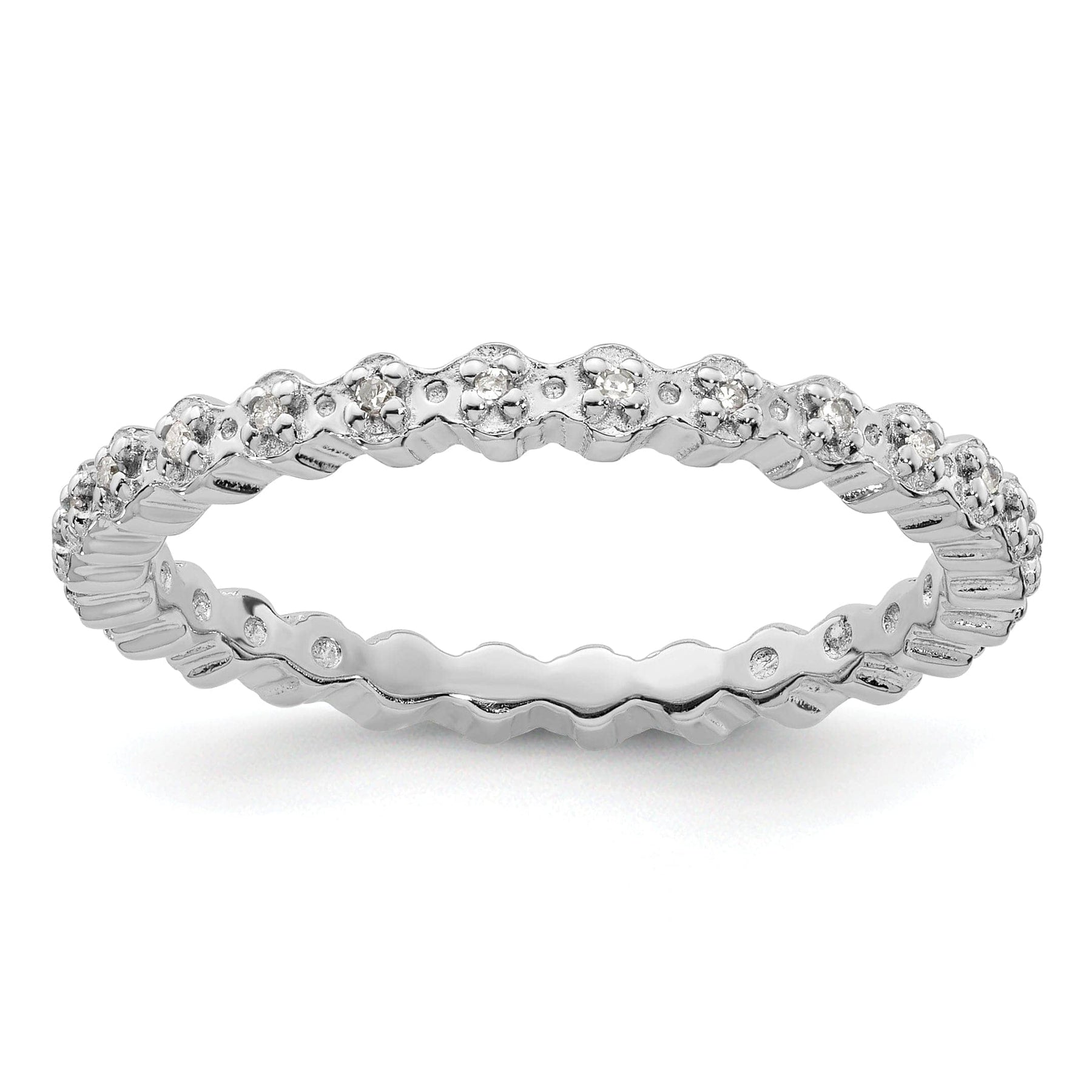 Indulge in the timeless elegance and sophistication with our Sterling Silver Stackable Expressions Diamond Ring. Crafted from high-quality sterling silver, this exquisite ring features a dazzling diamond accent that adds a touch of sparkle and luxury to your look. With a width of 2.25mm, this ring is perfect for stacking with other rings from our Stackable Expressions collection for a personalized and stylish look. Whether you wear it alone or stacked with other rings, this diamond ring is sure to elevate any outfit and make a statement. Treat yourself or a loved one to this stunning piece of jewelry that is as versatile as it is beautiful. Choose the Sterling Silver Stackable Expressions Diamond Ring and elevate your style to new heights.