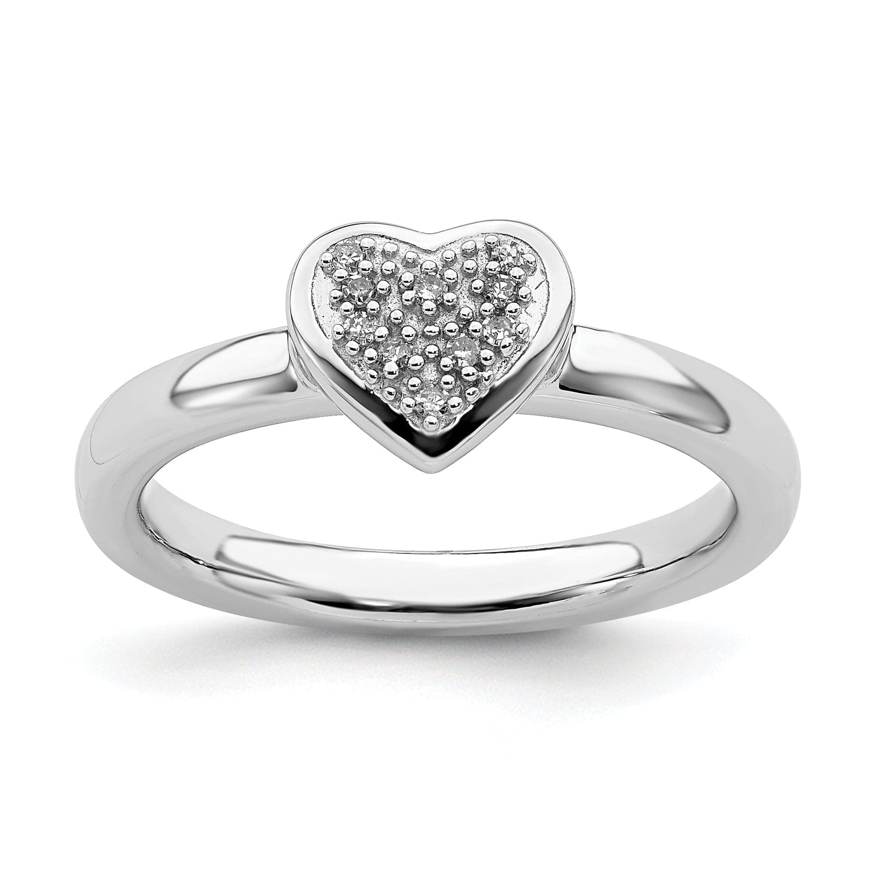 Designed for everyday wear, this Sterling Silver Stackable Expressions Heart Diamond Ring is both stylish and durable, ensuring that it will be a cherished piece in your jewelry collection for years to come. Treat yourself or a loved one to this timeless and elegant ring today.