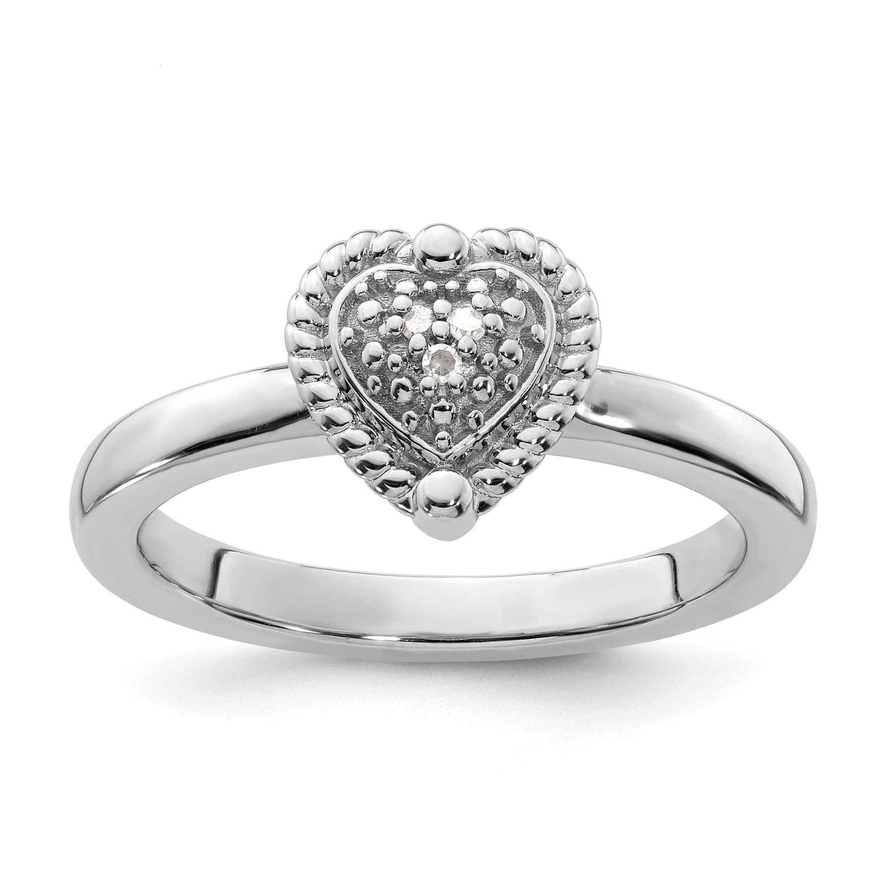 The stackable design of this ring allows you to mix and match it with other rings from the Stackable Expressions collection to create a unique and personalized look that suits your style. Whether worn alone or stacked with other rings, this Sterling Silver Stackable Expressions Heart Diamond Ring is sure to become a favorite in your jewelry collection.