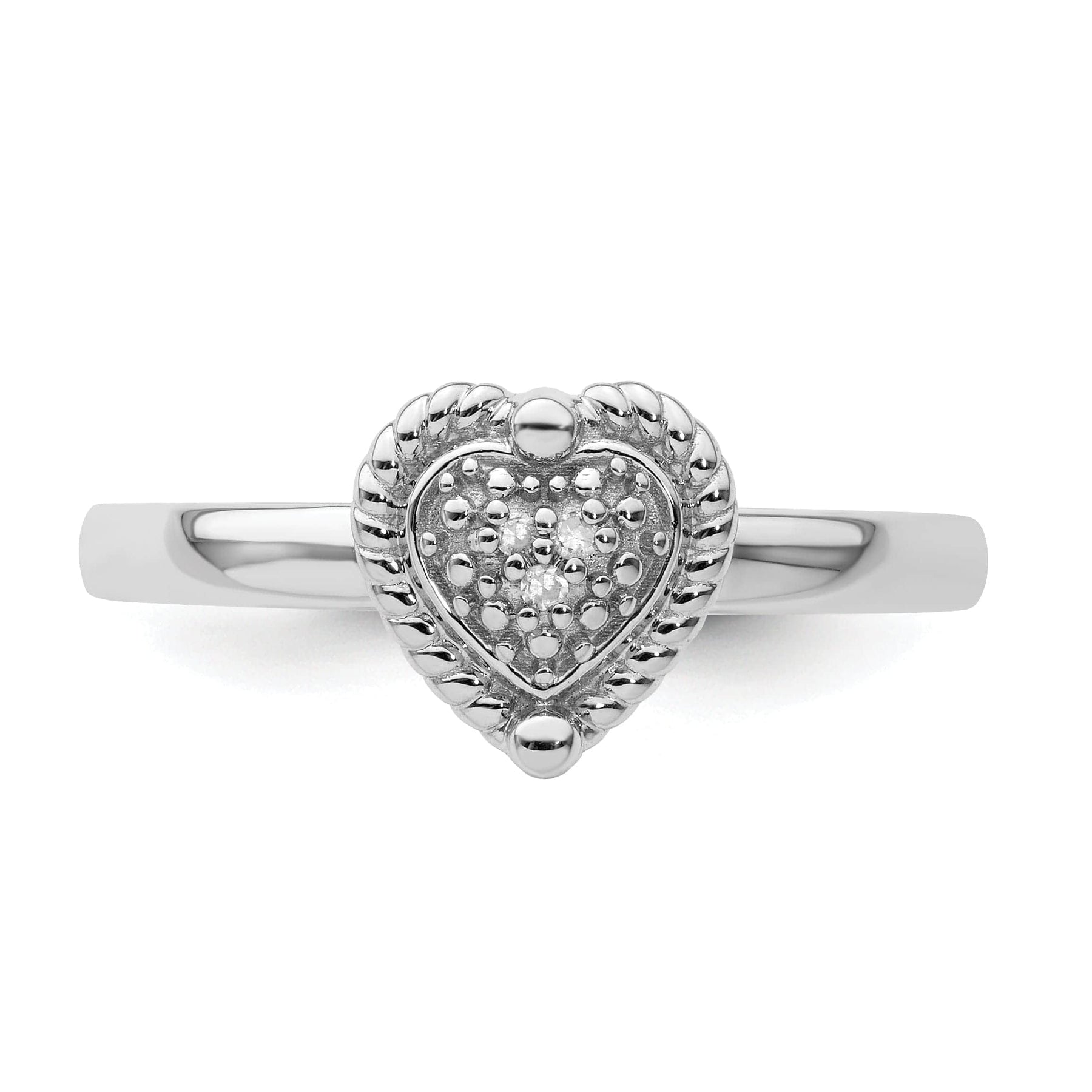 Elevate your jewelry collection with this stunning Sterling Silver Stackable Expressions Heart Diamond Ring. This beautiful ring is crafted from high-quality sterling silver and features a delicate heart design adorned with a sparkling diamond at its center.