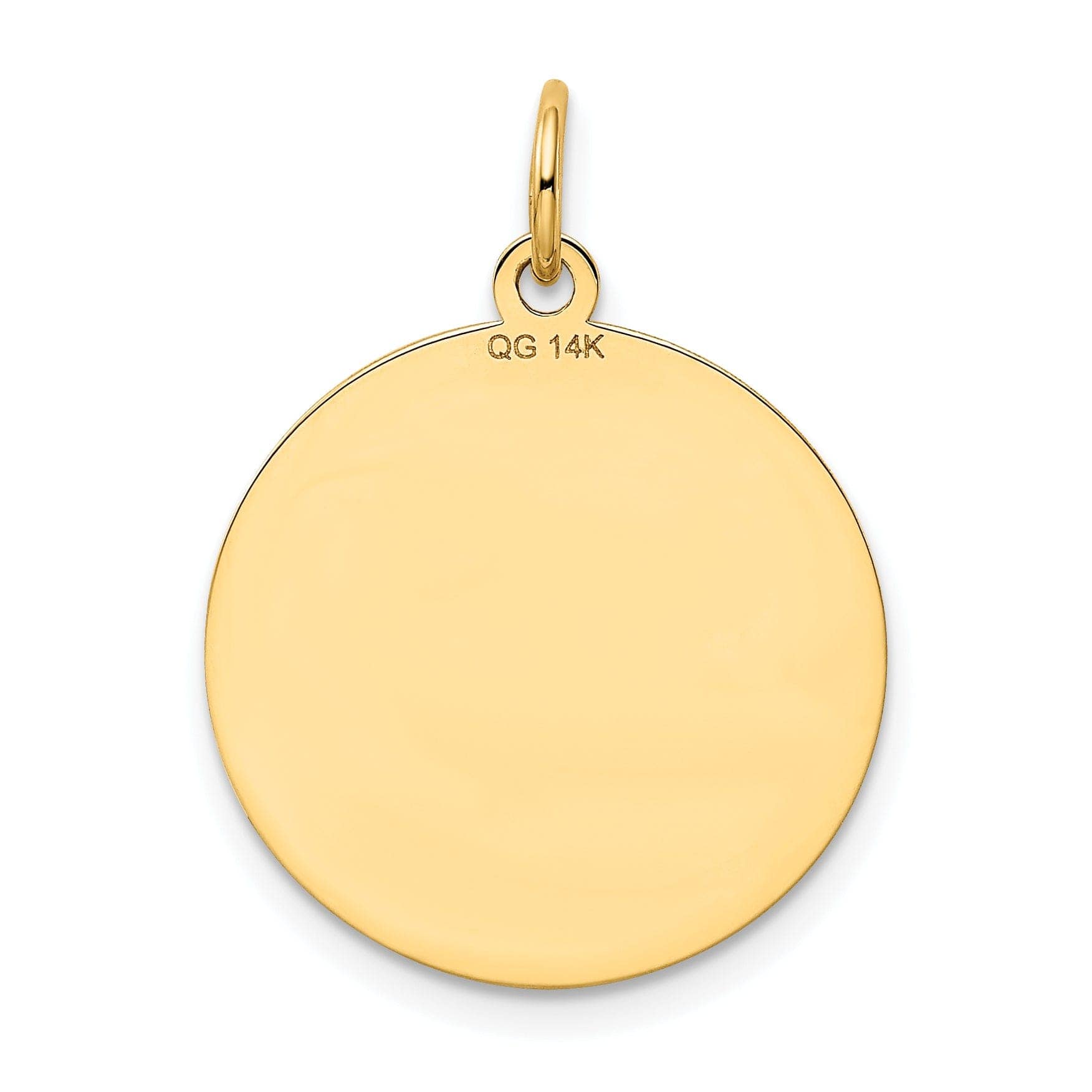 14k Yellow Gold Polished Finish Flat Back Shetland Sheep Dog Engravable Disc Round Shape Charm Pendant