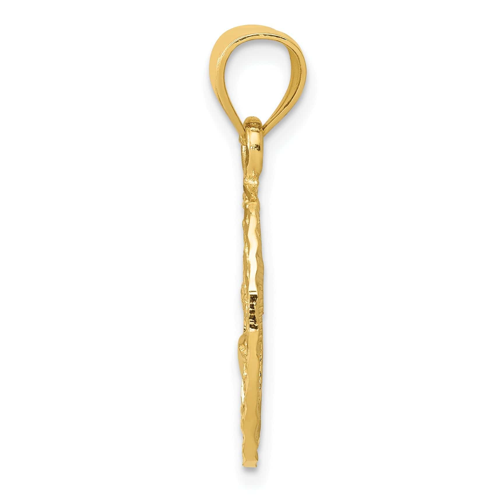 14K Yello w Gold Soild Polished Diamond Cut Finish Dolphin and Palm Design Tree Charm Pendant