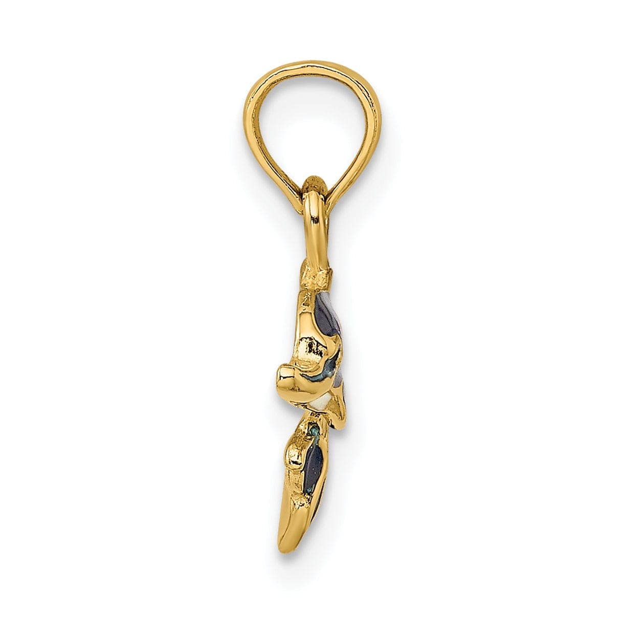 14K Yellow Gold Polished Blue Enamel Finish Dolphin Charm Pendant