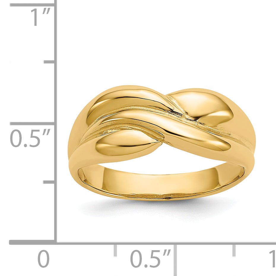 Add a touch of sophistication to your look with this exquisite ring. Perfect for everyday wear or special occasions, this ring is versatile and timeless. Treat yourself or a loved one to this luxurious piece of jewelry that is sure to be treasured for years to come. Make a bold statement with this 14k Yellow Gold Polished Twisted Dome Ring.
