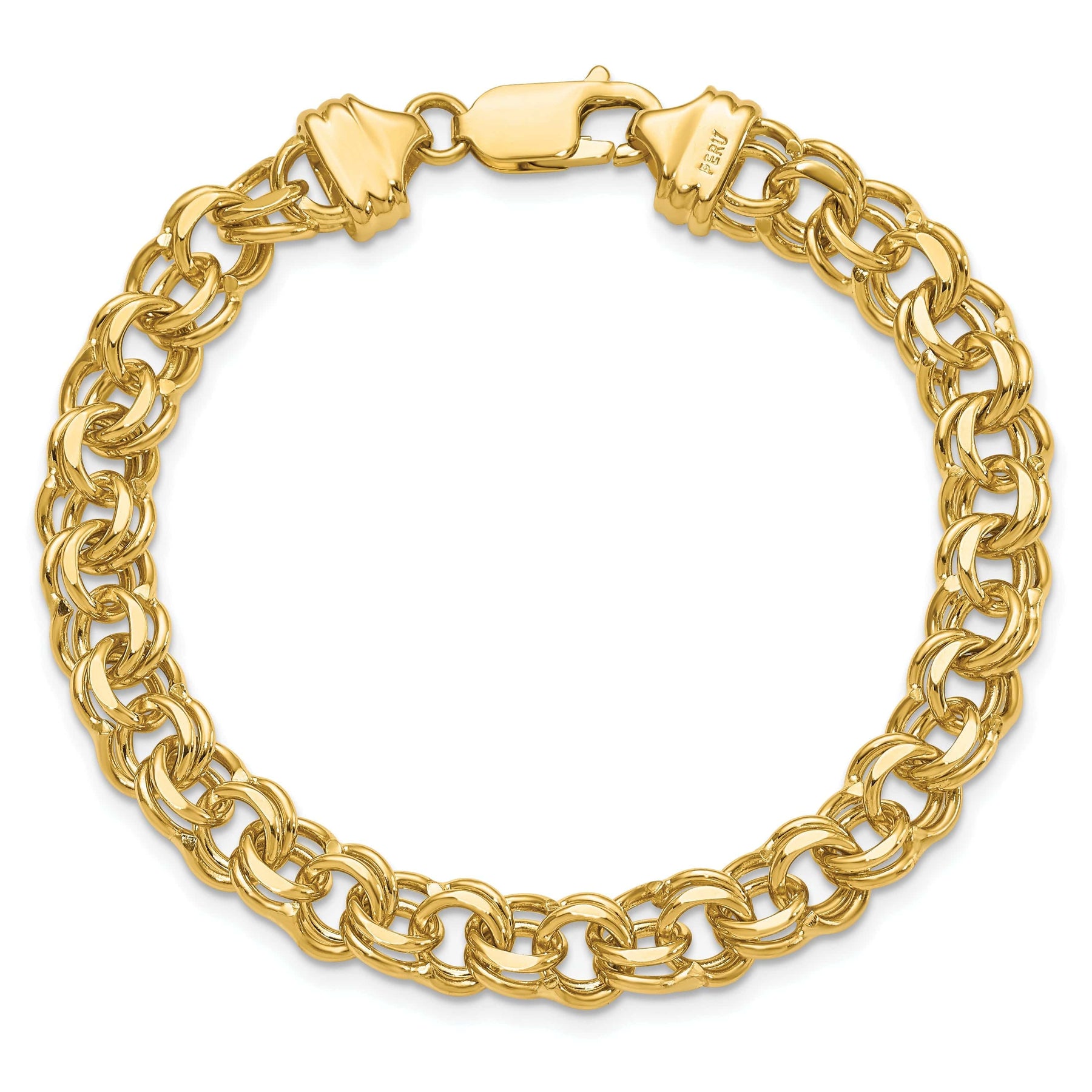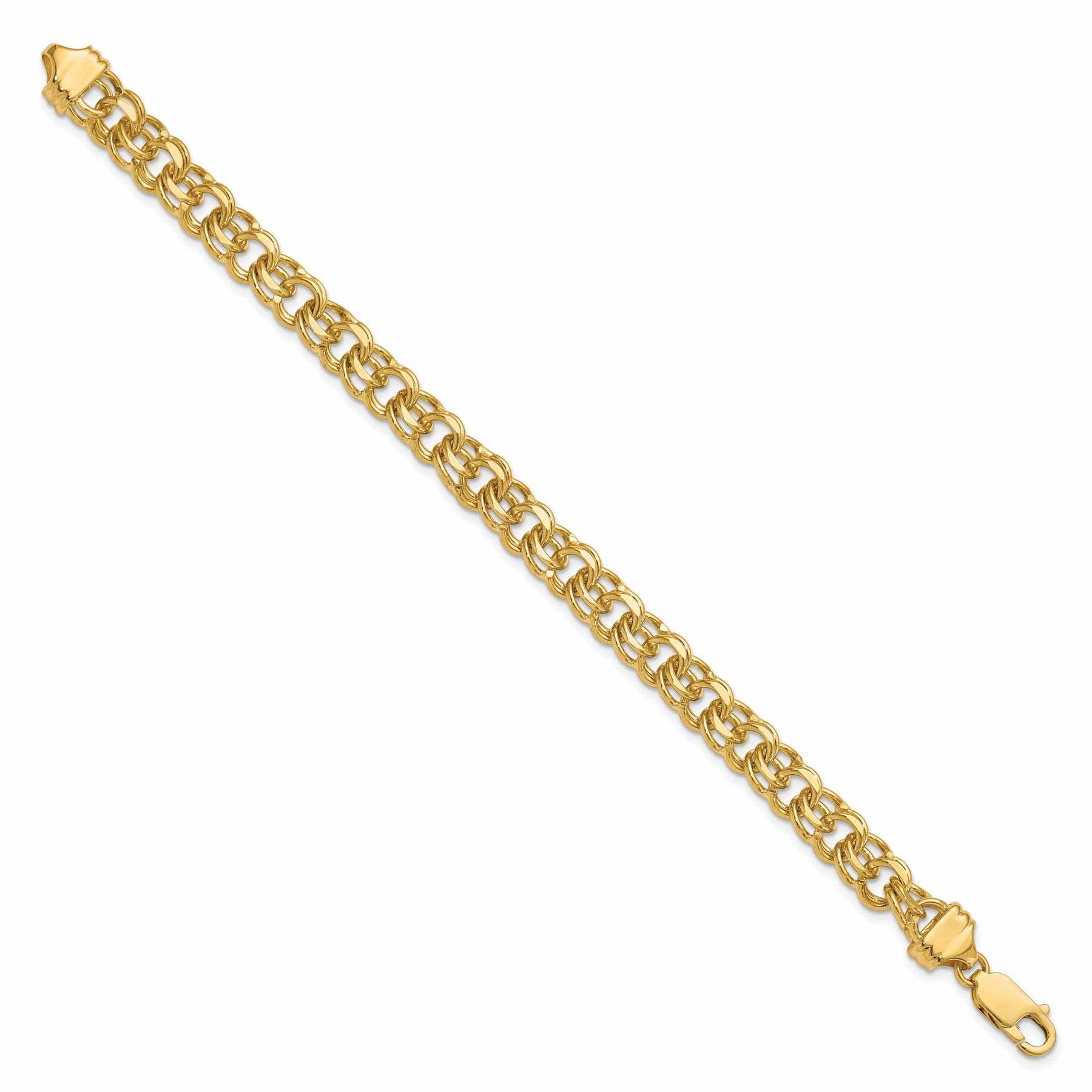 14k Yellow Gold Solid Double Link Charm Bracelet