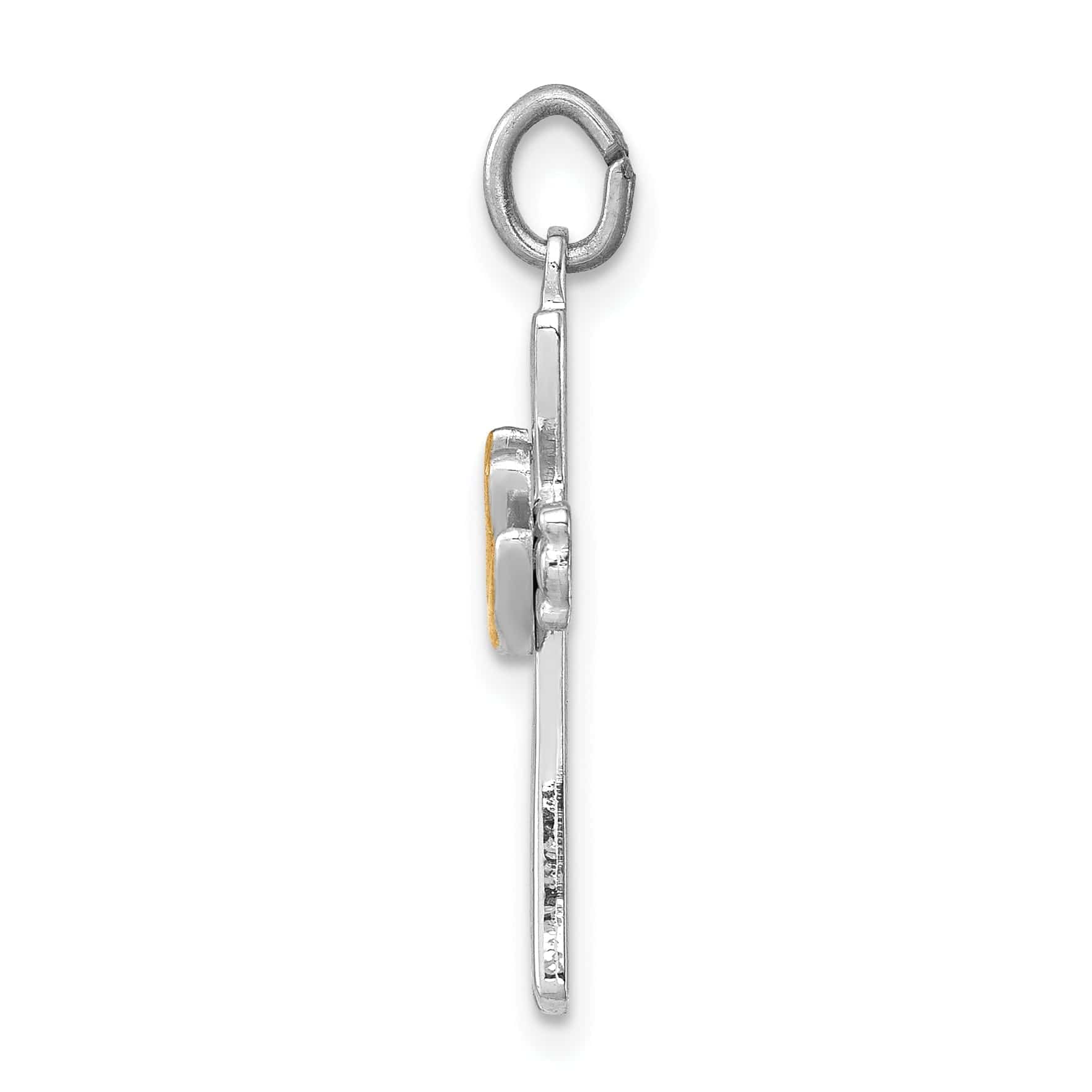 This stunning Sterling Silver Vermeil Dove Cross Charm is a beautiful and meaningful piece that will add a touch of elegance to any jewelry collection. Made with high-quality sterling silver, this charm features a delicate dove intertwined with a classic cross design.