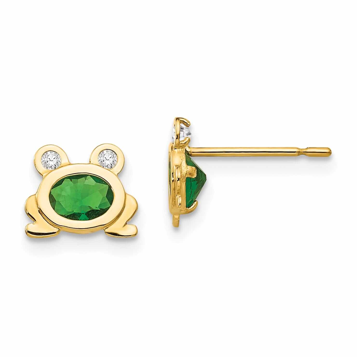 These adorable 14k Madi K CZ Children's Frog Post Earrings are the perfect accessory for any young animal lover. Crafted from 14k gold, these earrings feature a charming frog design with sparkling cubic zirconia accents for a touch of shimmer and shine. The post style closure ensures a secure and comfortable fit for all-day wear. These earrings are the ideal gift for any child who loves nature and animals, and they are sure to bring a smile to their face. Give the gift of whimsical beauty with these delightful frog earrings.