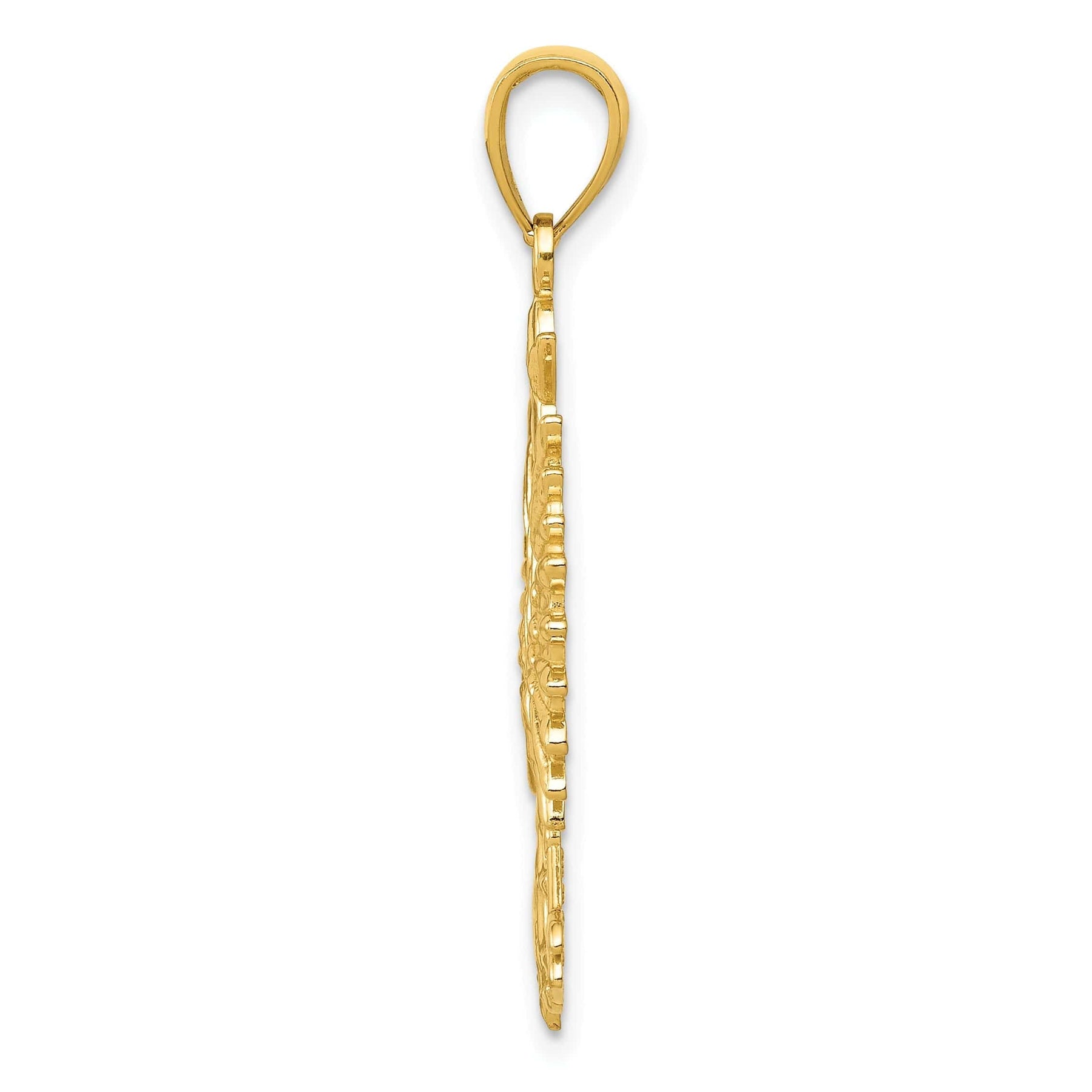Elevate your style with the mesmerizing beauty of this 14k Yellow Gold Textured Polished Finish Solid Phoenix Mythological Bird Design Mens Charm Pendant. Crafted from high-quality 14k yellow gold, this stunning pendant features a detailed phoenix mythological bird design that is sure to capture attention and turn heads. The textured polished finish adds an extra touch of elegance to this already eye-catching piece.