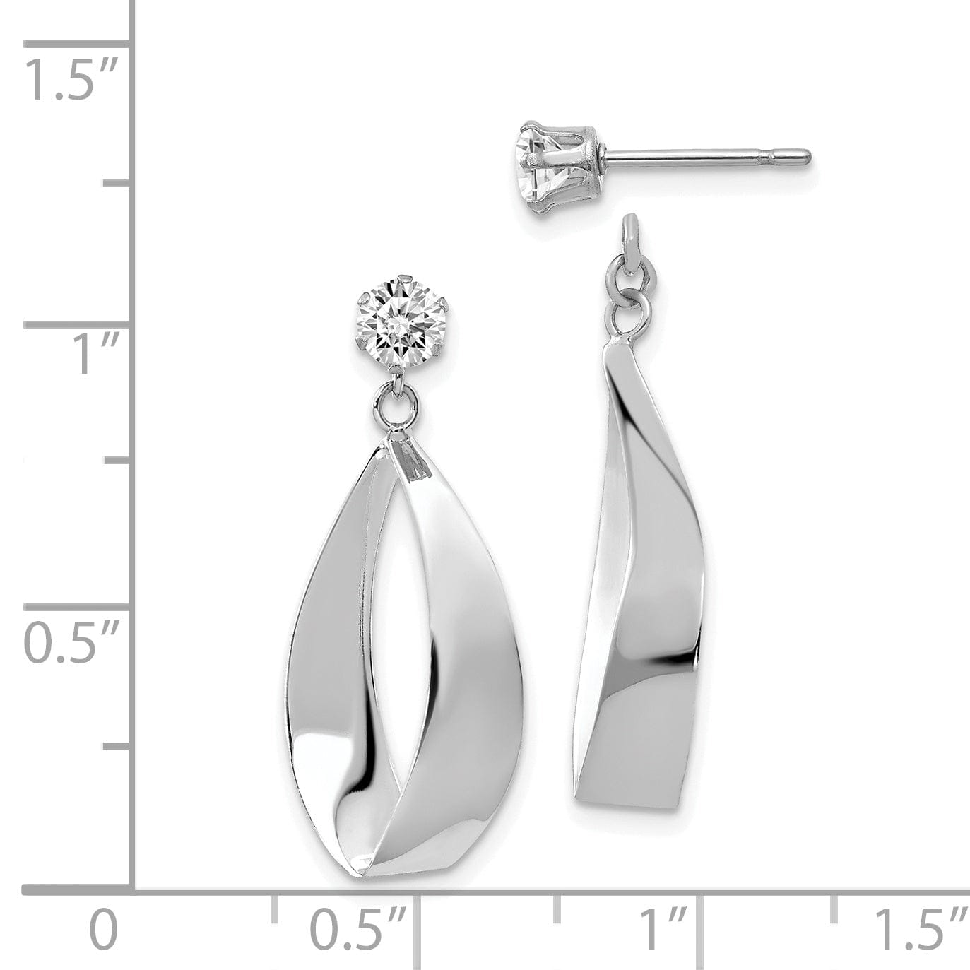 Add a touch of glamour and sophistication to your look with these stunning 14k White Gold Polished Oval Dangle Earring Jackets with Cubic Zirconia Stud Earrings. Crafted from high-quality 14k white gold, these elegant earring jackets feature a sleek and polished oval design that perfectly complements the dazzling cubic zirconia stud earrings.
