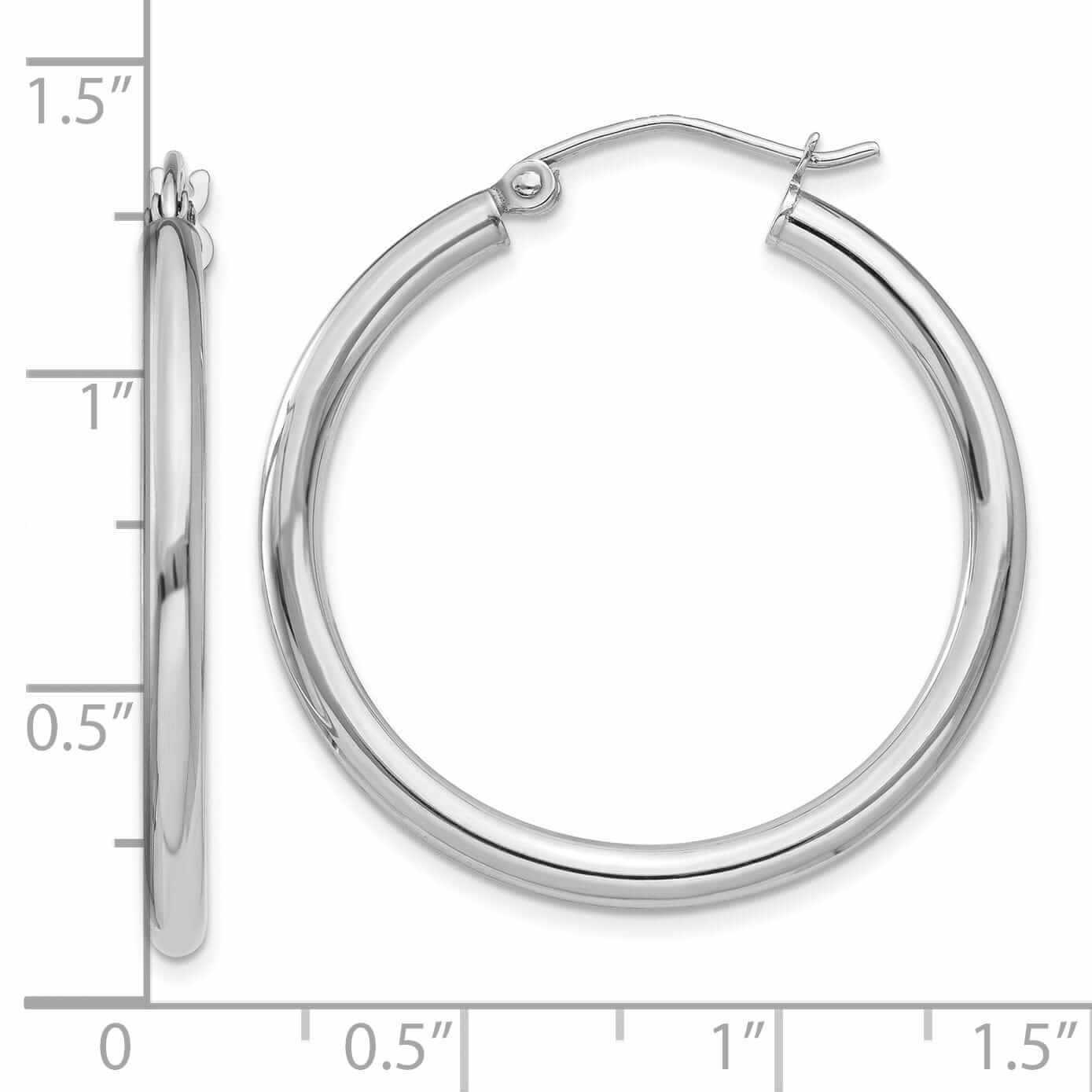 10k White Gold Polished 2.5MM Round Hoop Earrings