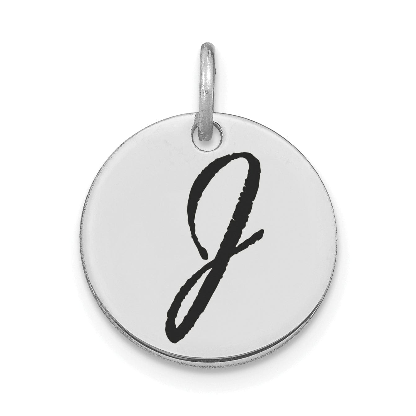 14k White Gold Polished Rhodium Black Epoxy Finish Letter J Initial Disk Shape Charm Pendant