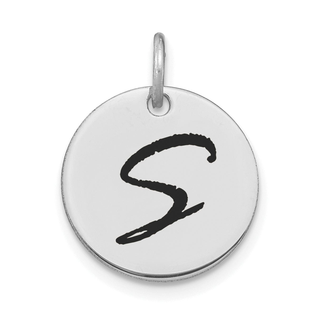 14k White Gold Polished Rhodium Black Epoxy Finish Letter S Initial Disk Shape Charm Pendant