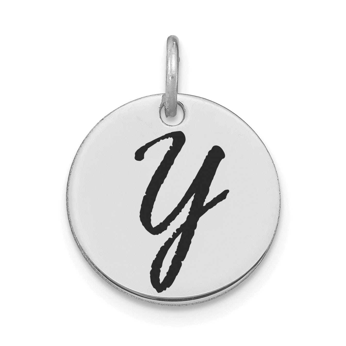 Add a touch of elegance to your jewelry collection with our 14k White Gold Polished Rhodium Black Epoxy Finish Letter Y Initial Disk Shape Charm Pendant. Order yours today and elevate your style to the next level.