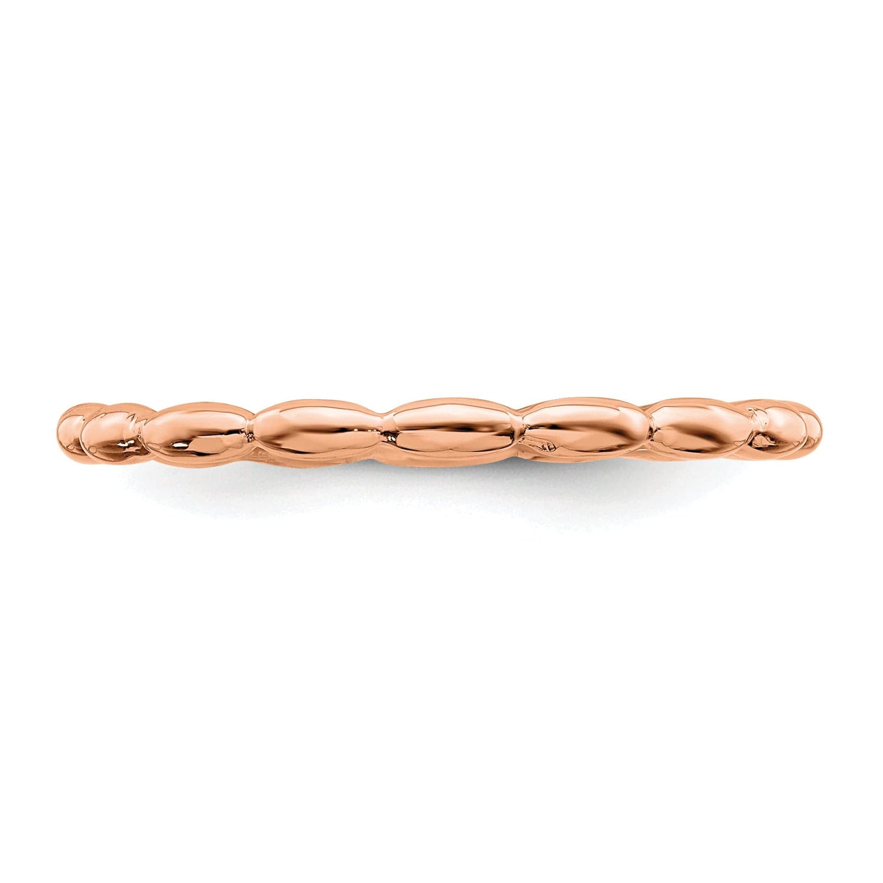 This Sterling Silver Pink-Plated Rice Bead Ring is versatile and can be worn alone for a sleek and polished look, or stacked with other rings for a more dramatic effect. It is a great addition to any jewelry collection and makes a thoughtful gift for yourself or a loved one. Elevate your style with this beautiful and chic ring today.